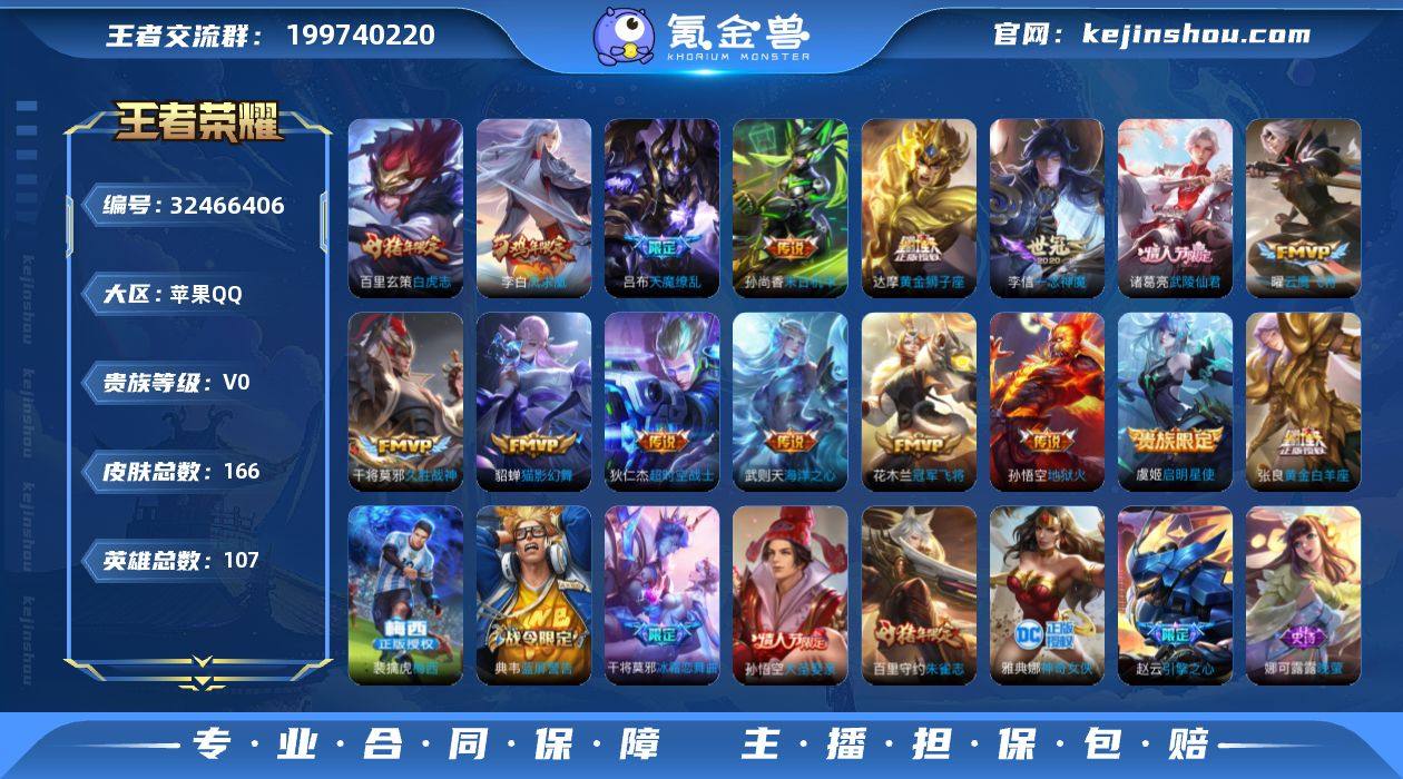 省标裴擒虎神奇女侠 梅西 引擎之心 贵族8 荣耀典藏1 传说皮肤16 史诗皮肤45 皮肤数量166 皮肤价值:109844 英雄107