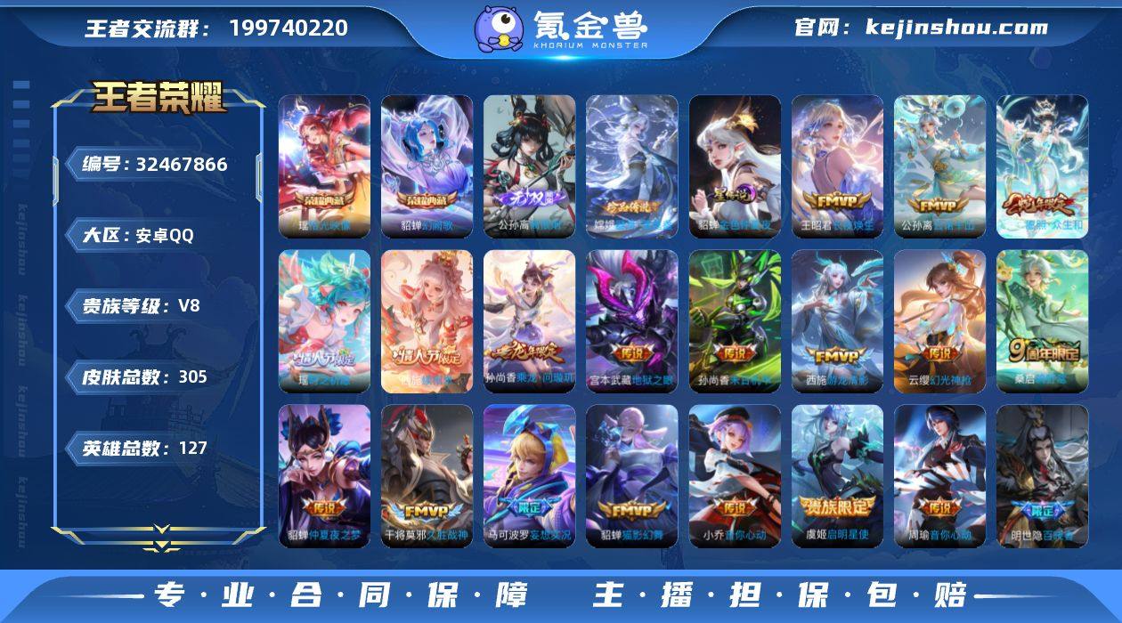 【XY510】贵族8/皮肤331/典藏2/传说33/史诗92/英雄128/达摩全皮/司马懿全皮/孙权全皮/李信全皮/马超全皮/空空儿全皮/影全皮/银白咏叹调/弑枪猎影/器灵·螭龙剑/天机白泽/纵目迁山/神树通天/九山相柳/云诺千山/愿照·山河定/愿照·千秋盛/愿照·众生和/愿照·九州拓/愿照·福禄聚/愿照·岁时盈/玄雷天君/鸣野蒿/铠冥王哈迪斯/典韦战鼓燎原/琥珀纪元马超/澜逐花归海/惊梅引/妄想奇谈/妄想实况/画中仙/齐天大圣/山海·炽霜斩/无双飞将/淬星耀世/启明星使/零号·赤焰/一念神魔/黄金狮子座/黄金射手座/永曜之星/仲夏夜之梦/地狱之眼/天魔缭乱/狰(s8)/蔡文姬夏日便利店/大乔绒语心约/虞姬夏日便利店/天穹之誓(s36)/谪仙醉月/阴阳师/皇家上将/引擎之心/百木心枪/热情桑巴/云端筑梦师/高山流水/重明(s11)/御风骁将/云间偶戏/朔风刀(s17)/游园惊梦/烛龙(s10)/穷奇(s12)/暗影游猎/山海·玄木吟/魔术师/万华元夜(s22)/星际陆战队-达摩/沙漠行僧(s26)/海滩派对/醍醐杖(s20)/冰锋战神/逐梦之音/演武夺筹(s23)/飞衡/傲雪梅枪/金庭之子(s27)/青春决赛季/至尊宝/大圣娶亲/御旌(s15)/云中旅人(s29)/驱傩正仪(s24)/潮玩骑兵/单词大作战/黎明之约/饕餮(s9)/原初探秘者(s21)/五谷丰年/千军破阵(s25)/原初追遂者/混沌棋(s18)/顽趣-梦奇/疑决卦(s19)/李小龙/擒涛扼浪(s31)/御狮(s13)/御霄(s14)/御銮(s16)/梁祝/探海日志(s32)/海盐诗旅(s30)/江河有灵/古海寻踪(s33)/蒙恬荣光圣徽/鬼谷子天穹祈灯(S34)/妄想食味/龙武盛年/剑破天穹(s35)/程咬金群星魔术团/熔金海岸/噬灭天穹(s37)/谧流熔炉/虚灵犬护/逆浪荇歌/荣光之誓/星界战将/九幽镇关/破空之剑/神迹守卫/茶境仙/访茗客/鸭鸭历险记-刘禅/鸭鸭历险记-沈梦溪/百相守梦-周瑜/百相守梦-孙策/光弋星穹/往忆晖光/线条小狗-周瑜/电玩小子/嘻哈天王/未来纪元-赵云/圣诞恋歌/冰雪圆舞曲/地狱岩魂/鬼剑武藏/...