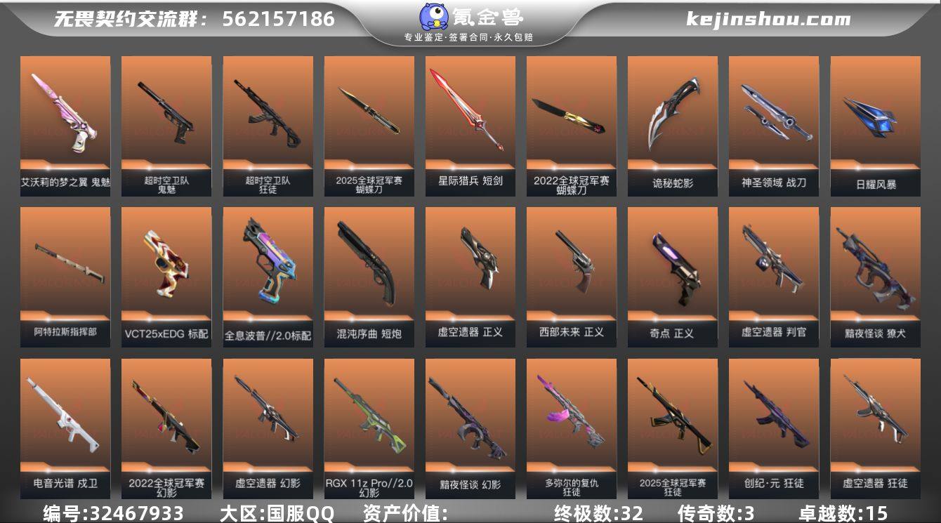 【931352】可二次玩够能回血 22套 25套 虚空 掠夺2.0 蛇年套装 qyz9021 【近战武器】:近战武器-2025全球冠军赛 蝴蝶刀,近战武器-2022全球冠军赛 蝴蝶刀,近战武器-影钩,近战武器-神之刃,近战武器-双生獠牙,近战武器-源始幻刃,近战武器-定海神珍,近战武器-诡秘蛇影 军刀,近战武器-神圣领域 战刀,近战武器-日耀风暴 遗器,近战武器-阿特拉斯指挥部 甩棍,近战武器-星际猎兵 短剑 【狂徒】:狂徒-超时空卫队,狂徒-2025全球冠军赛,狂徒-洪荒怒焰,狂徒-全息波普//2.0,狂徒-创·纪元,狂徒-虚空遗器,狂徒-多弥尔的复仇,狂徒-掠影,狂徒-盖亚的复仇,狂徒-诡秘蛇影 【幻影】:幻影-2022全球冠军赛,幻影-黯夜怪谈,幻影-RGX 11z Pro//2.0,幻影-虚空遗器,幻影-异鳞魔蛇,幻影-神中神罚,幻影-掠影//2.0,幻影-神圣领域,幻影-末日之翼 【戍卫】:戍卫-电音光谱,戍卫-月球哨兵,戍卫-折光棱晶,戍卫-电音光谱 【獠犬】:獠犬-黯夜怪谈,獠犬-神圣领域 【冥驹】:冥驹-堕天遗武,冥驹-离子武器,冥驹-星云暗涌 【飞将】:飞将-末日之翼 【莽侠】:莽侠-神中神罚,莽侠-诡秘蛇影,莽侠-月球哨兵 【战神】:战神-神圣领域 【奥丁】:奥丁-掠影//2.0,奥丁-末日之翼 【判...