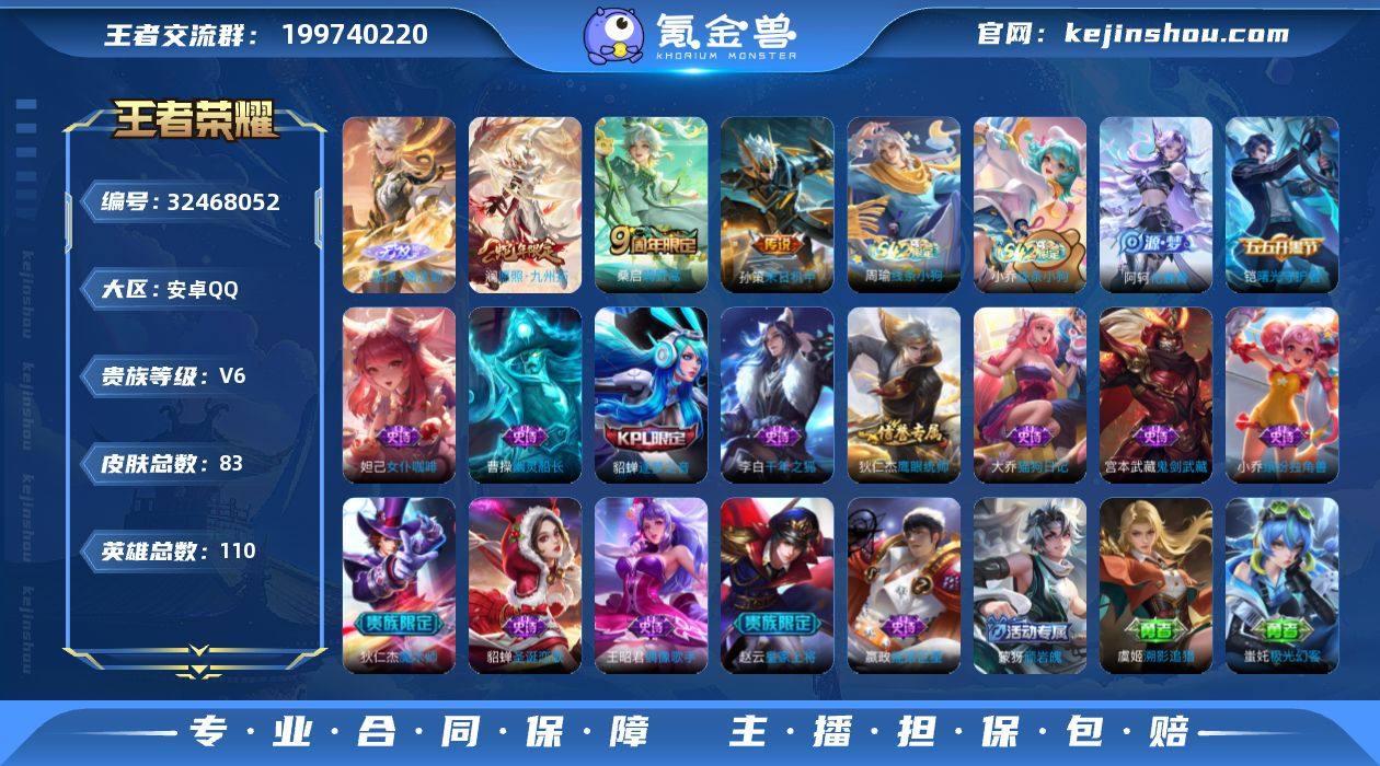 AHC50077,,,,,,安卓Q-V6-永恒钻石III段位-127英雄-275皮肤-1典藏皮肤-6传说-79史诗 【英雄全皮】:影全皮 【荣耀典藏】:李白鸣剑曳影 【传说皮肤】:后羿神树通天,桑启鸣野蒿,诸葛亮时雨天司,干将莫邪久胜战神,百里玄策白虎志,孙尚香末日机甲 【限定皮肤】:姜子牙天穹之誓,狄仁杰阴阳师,赵云皇家上将,墨子神迹守卫,孙尚香蔷薇恋人,鲁班七号狮舞东方,庄周高山流水,高渐离玩趣恶龙,元歌云间偶戏,元歌无心,夏侯惇朔风刀,甄姬游园惊梦,狄仁杰魔术师,狄仁杰万华元夜,达摩沙漠行僧,项羽海滩派对,老夫子醍醐杖,老夫子航海奇遇记,程咬金演武夺筹,韩信飞衡,兰陵王金庭之子,亚瑟潮玩骑士王,孙悟空至尊宝,牛魔御旌,后羿圣弓游侠,李元芳银河之约,李元芳云中旅人,钟馗神迹守卫,钟馗驱傩正仪,杨玉环遇见飞天,干将莫邪真爱魔法,雅典娜单词大作战,雅典娜黎明之约,蔡文姬繁星吟游,鬼谷子原初探秘者,鬼谷子五谷丰年,诸葛亮时雨天司,苏烈千军破阵,百里玄策白虎志,百里玄策原初追逐者,弈星混沌棋,梦奇顽趣,沈梦溪星空之诺,沈梦溪大漠名商,明世隐疑决卦,裴擒虎李小龙,裴擒虎擒涛扼浪,狂铁御狮,米莱狄御霄,云中君纤云弄巧,盾山御銮,上官婉儿梁祝,嫦娥拒霜思,嫦娥暖冬兔眠,蒙犽狂想玩偶喵,鲁班大师探海日志,桑启海盐诗旅,暃星界游侠,艾琳女武神,艾琳流音漫舞,司空震地狱燃心,阿古朵江河有灵,张良古海寻踪,蒙恬荣光圣徽,鬼谷子天穹祈灯,姬小满妄想食味,刘邦剑破天穹,程咬金群星魔术团,周瑜熔金海岸 【年限皮肤】:百里玄策白虎志,韩信飞衡,诸葛亮时雨天司 【赛季限定】:狂铁御狮,米莱狄御霄,牛魔御旌,盾山御銮,夏侯惇朔风刀,弈星混沌棋,明世隐疑决卦,老夫子醍醐杖,鬼谷子原初探秘者,狄仁杰万华元夜,程咬金演武夺筹,钟馗驱傩正仪,苏烈千...
