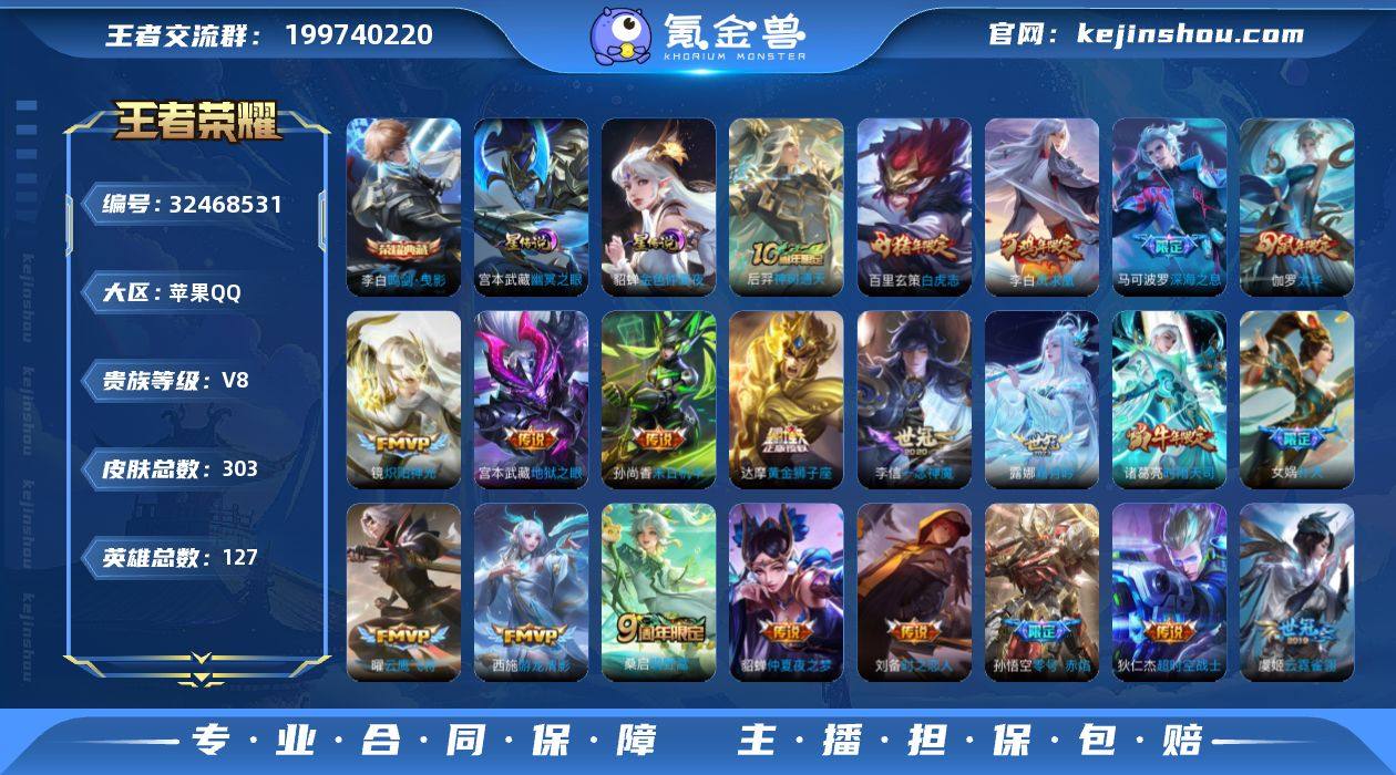 W15132,,可立即换绑无需挂单养号,,,铭文满级,,,典藏1,,,传说22,,,星传说3,,按键4,,夺宝263,,苹果Q-V8-最强王者段位-127英雄-303皮肤-1典藏皮肤-22传说-103史诗 【荣耀典藏】:李白鸣剑曳影 【传说皮肤】:后羿神树通天,桑启鸣野蒿,露娜霜月吟,马可波罗深海之息,女娲补天,西施游龙清影,诸葛亮时雨天司,镜炽阳神光,虞姬启明星使,孙悟空零号赤焰,曜云鹰飞将,李信一念神魔,刘备时之恋人,伽罗太华,虞姬云霓雀翎,达摩黄金狮子座,百里玄策白虎志,貂蝉仲夏夜之梦,李白凤求凰,孙尚香末日机甲,宫本武藏地狱之眼,狄仁杰超时空战士 【限定皮肤】:姜子牙天穹之誓,狄仁杰阴阳师,小乔纯白花嫁,赵云皇家上将,赵云龙胆,墨子神迹守卫,嬴政优雅恋人,嬴政白昼王子,孙尚香蔷薇恋人,庄周高山流水,高渐离死亡摇滚,孙膑天狼运算者,白起夜都怪侠,芈月重明,芈月幻夜卜梦,吕布猎兽之王,周瑜真爱至上,夏侯惇朔风刀,甄姬游园惊梦,曹操烛龙,典韦穷奇,马可波罗逐梦之星,马可波罗暗影游猎,马可波罗深海之息,狄仁杰魔术师,狄仁杰万华元夜,达摩星际陆战队,达摩沙漠行僧,项羽海滩派对,老夫子醍醐杖,老夫子航海奇遇记,关羽冰锋战神,程...