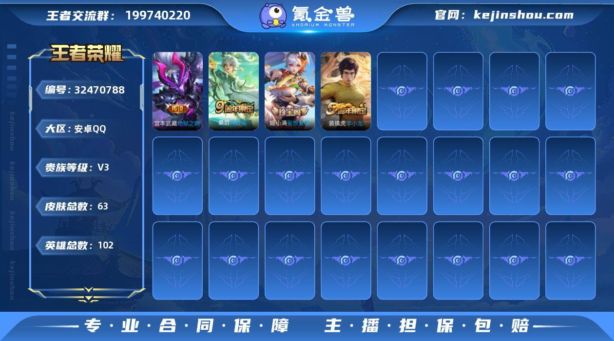 安卓Q 可二次 2传说102英雄63皮肤 鸣野蒿 地狱之眼 冰冠公主 战舞者 李小龙 黄金分割率 妄想食味 心灵战警 修罗 千年之狐 街头霸王 摇滚巨星 缤纷独角兽 鬼剑武藏 克喵 拳王 海盐诗旅 擒涛扼浪 魅力维加斯 古海寻踪 天穹祈灯 乱世虎臣 王者荣耀账号
