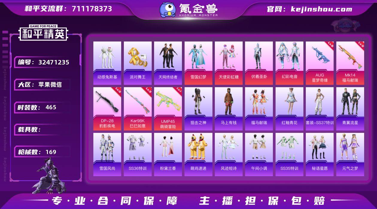 苹果 手Q-14粉装-6特效枪-1载具-4粉色飞行器-97417热力值-14王牌印记-223套装-252枪皮 【热门品类】:粉装-梦幻火箭,套装-浪漫天命,套装-小丑鱼,套装-奇异狩猎者,套装-动感兔斯基人偶服,套装-龟仙人,套装-潮萌小黄鸭,套装-暗影哥特,套装-浪漫波比,套装-粉红小猪 【粉色套装】:粉装-天使彩虹糖,粉装-梦幻火箭,粉装-智能音符,粉装-狩月元帅,粉装-幻彩马卡龙,粉装-锦绣火鲤,粉装-草莓生巧,粉装-冰霜白皇,粉装-炙焰红王,粉装-香水柠檬,粉装-烈焰拳霸,粉装-蜜桃特工,角色-女娲灵识,角色-智耀战神 【粉色枪皮等级】:M416-心之恋语(七级),GROZA-香水柠檬(七级),UMP45-萌骑冒险(四级),Kar98K-巳巳如意(五级),Mk14-福马献瑞(三级),AMR-智耀战神(七级) 【粉色载具】:阿斯顿马丁DBS(红) 【粉色枪皮】:M416-心之恋语,GROZA-香水柠檬,UMP45-萌骑冒险,Kar98K-巳巳如意,Mk14-福马献瑞,AMR-智耀战神 【粉色飞行器】:春暖花开飞行器,梦幻火箭飞行器,锦绣火鲤飞行器,绮梦青鸾飞行器 【粉色降落伞】:甜心宝贝降落伞,春暖花开降落伞,梦幻火箭降落伞,PEL轰鸣竞梦者降落伞,神秘黑猫降落伞,古堡领主降落伞,伏魔团降落伞,马卡龙降落伞,潮汐统领降落伞,锦绣火鲤降落伞,阿狸红降落伞,夏日绵绵冰降落伞,银刃赛罗降落伞,童趣迷兔降落伞,香水柠檬降落伞,暗翼战神降落伞,流星咚咚降落伞,智耀战神降落伞 【稀有套装】:套装-龟仙人,套装-圣穹绘梦,角色-俏兔智灵,套装-粉恋花,套装-紫幽梦,套装-蓝冰羽,角色-猎影月神,角色-瑰梦爱神,套装-霓虹热舞,套装-彩虹兔,套装-云朵鹅,套装-雪绒豹 【稀有枪皮】:AKM-四圣焕新,AKM-夜灯,AKM-奇异狩猎者,AKM-彩虹符号,AKM-恐龙拽拽,AKM-春暖花开,AKM-灼热熔岩,AKM-玉龙,AKM-生命誓言,AKM-破晓战魂,AKM-缤纷海域,AKM-萌趣颜...
