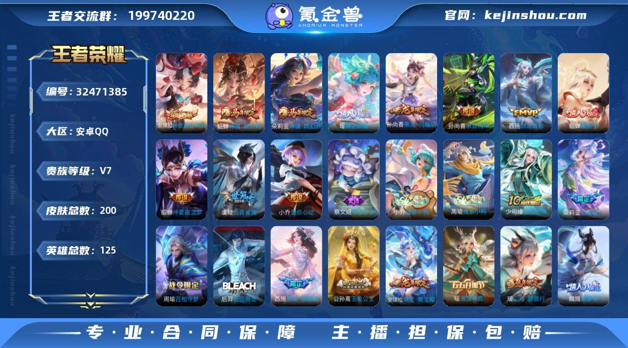 【937424】[17732111]V7 1典藏 10传说 125英雄 200皮肤 可修改实名 女号 【稀有英雄】大司命,嬴政(始皇帝),韩信(韩跳跳),夏洛特(夏师傅),艾琳,橘右京(橘子),娜可露露(鸟人),不知火舞,赵云,金蝉(唐僧),戈娅 【荣耀水晶】颠倒童话·魔镜 【传说皮】神骥·聚万邦,神骥·鸣幻洲,貂蝉曦玄引,乘龙·问璇玑(孙尚香年限),游龙清影(小青龙),仲夏夜之梦(大飞蛾),末日机甲-孙尚香(绿蚂蚱),云霓雀翎,音你心动-小乔 【珍宝阁皮】胡桃夹子,蔷薇恋人,女武神 【赛季/战令皮】古海寻踪(s33),海盐诗旅(s30),擒涛扼浪(s31),探海日志(s32),玲珑珍味,天穹祈灯(s34),醍醐杖(s20),原初探秘者(s21),万华元夜(s22),演武夺筹(s23),驱傩正仪(s24),千军破阵(s25),沙漠行僧(s26),金庭之子(s27),大漠名商(s28),云中旅人(s29) 【史诗皮】破空之剑,乘龙·忆丹青(大乔年限),乘龙·聚宝船(安琪拉年限),奇遇梦乡,线条小狗-周瑜,线条小狗-小乔,巫礼祀神,百相守梦-周瑜,石田雨龙,幻珠鲛人,遇见神鹿,特工魅影,江河有灵,无限星赏官,偶像歌手,晚萤,魅语,白蛇,猫狗日记-大乔,时之恋人-孙尚香,乱世虎臣,节奏热浪,女仆咖啡,水果甜心,心灵骇客,时之奇旅-安琪拉,德古拉伯爵,暗隐猎兽者,舞动绿茵,诗语江南,纤云弄巧,繁星吟游(呼啦...