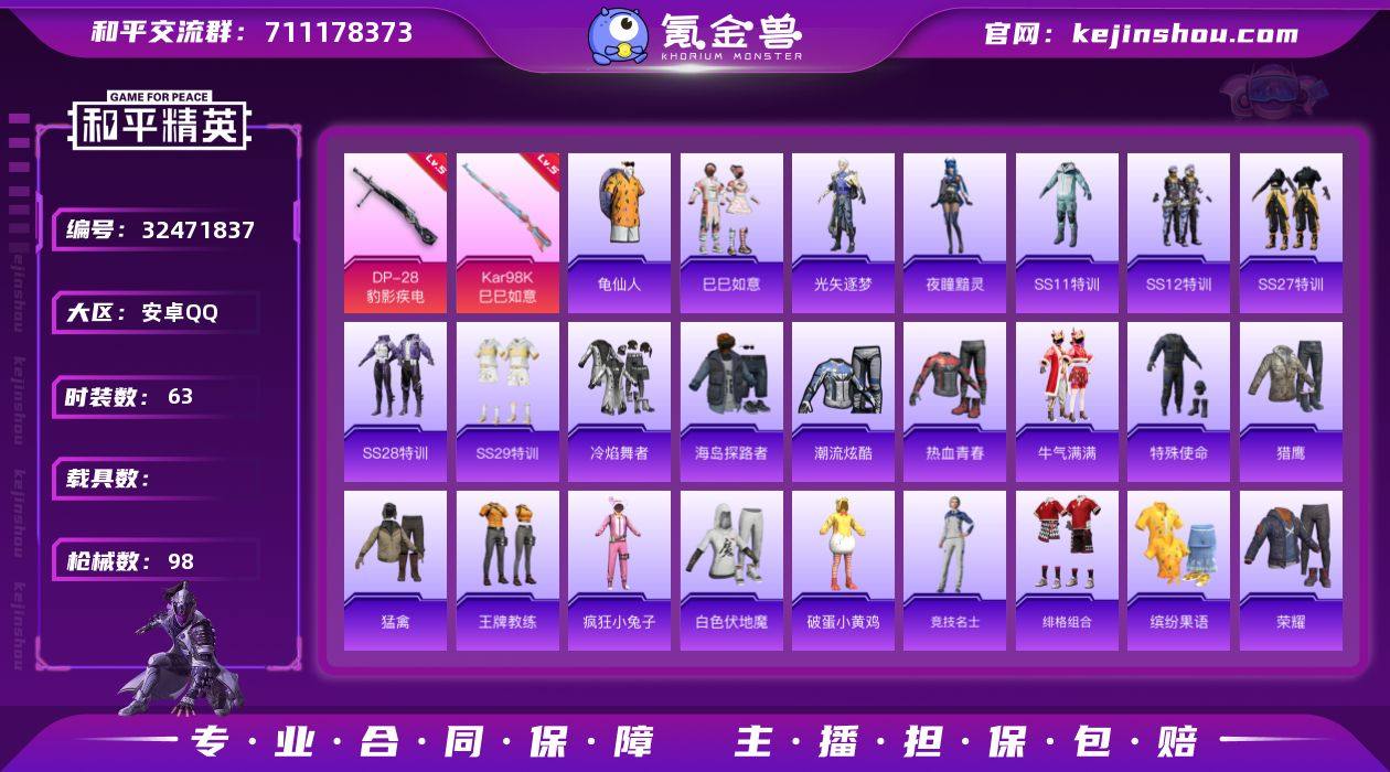 编号99043 不可二次 等级59 热力值23922 3特效枪 5级DP-28-豹影疾电 5级Kar98K-巳巳如意 快乐星愿 4粉降落伞 炫彩糖果飞行器