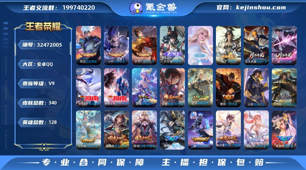 安卓QQV9小国玄策李白木兰典藏曜无双孙策珍品怪盗基德白狼雪兔前尘镜未来机甲幽冥火蓝宫本李逍遥白虎志老虎年限2典藏1无双2珍品38传说连体端瓦侦查假面幻影颗秒正义火花钳特工队堕天Ak 安卓Q-V9-最强王者段位-128英雄-370皮肤-2典藏皮肤-1无双-2珍品传说-38传说-115史诗 【英雄全皮】:马可波罗全皮,孙权全皮,娜可露露全皮,澜全皮,司空震全皮,戈娅全皮,影全皮,海诺全皮 【荣耀典藏】:李白鸣剑曳影,花木兰九霄神辉 【无双皮肤】:曜器灵螭龙剑 【珍品传说】:孙策时之奇旅,马可波罗怪盗基德 【传说皮肤】:后羿神树通天,公孙离云诺千山,司空震愿照山河定,澜愿照九州拓,云缨幻光神枪,桑启鸣野蒿,夏侯惇霜北刀,铠冥王哈迪斯,亚连落雪白狼,孙策乘龙淬吴钩,赵云乘龙铭钟鼎,澜逐花归海,马可波罗妄想实况,澜电玩雷克斯,李信山海炽霜斩,百里守约碎云,娜可露露前尘镜,马可波罗深海之息,马超无双飞将,孙策挚爱之约,裴擒虎寅虎赤拳,孙尚香异界灵契,赵云淬星耀世,王昭君乞巧织情,曜李逍遥 ,公孙离祈雪灵祝,铠绛天战甲,镜炽阳神光,虞姬启明星使,孙悟空零号赤焰,曜云鹰飞将,李信一念神魔,达摩黄金狮子座,百里玄策白虎志,诸葛亮武陵仙君,孙尚香末日机甲,宫本武藏地狱之眼,孙悟空地狱火 【限定皮肤】:夏侯惇霜北刀,铠冥王哈迪斯,暃埋骨钱,姜子牙天穹之誓,狄仁杰阴阳师,赵云皇家上将,赵云百木心枪,嬴政优雅恋人,孙尚香异界灵契,庄周云端筑梦师,庄周高山流水,高渐离死亡摇滚,钟无艳超时空战士,芈月幻夜卜梦,吕布御风骁将,甄姬游园惊梦,甄姬落雪兰心,马可波罗逐梦之星,马可波罗暗影游猎,马可波罗深海之息,马可波罗山海玄木吟,马可波罗妄想实况,狄仁杰魔术师,狄仁杰万华元夜,达摩沙漠行僧,项羽海滩派对,老夫子醍醐杖,关羽冰锋战神,程咬金演武夺筹,韩信...
