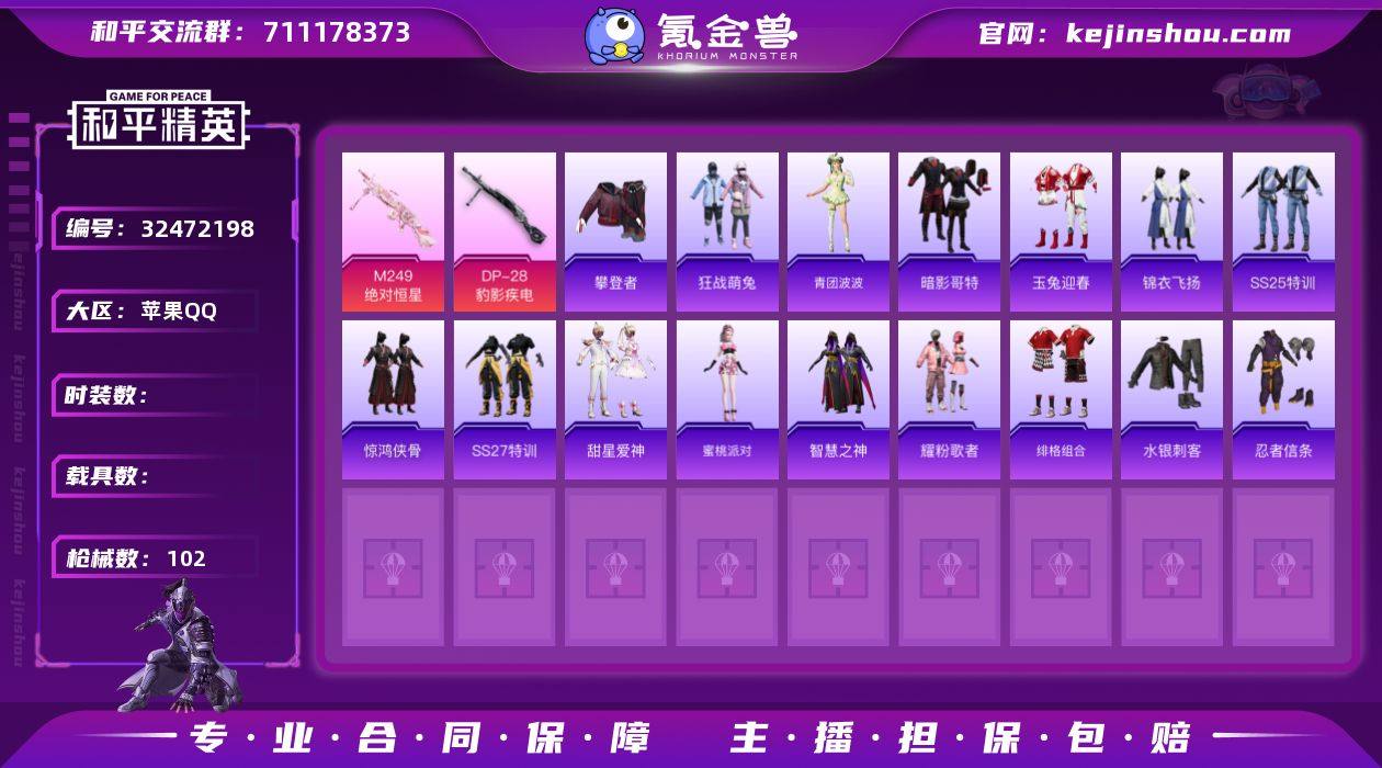 WJ829【红眼罩 全套国宝头+小熊背包 地铁满天赋 1钻苏尔南手枪】苹果手Q-2粉装-5特效枪-76套装-102枪皮-4王牌印记-超级王牌9星-29274热力值