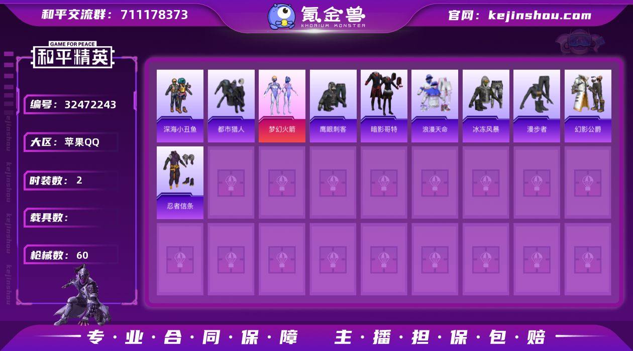 WJ835【小雾神2粉装-3特效 梦幻火箭 幻影战神 浪漫天命】苹果手Q-2粉装-3特效枪-32套装-60枪皮-2王牌印记-传奇王牌9星-13790热力值