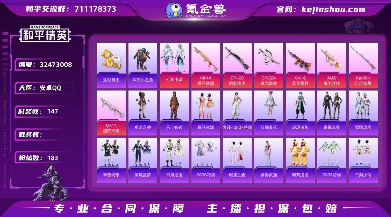 【0载具 7特效枪 1粉装 183枪皮 147套装】10王牌4卓越2传奇 热力值5w 派对舞王-深海小丑鱼,幻彩电音 M416-风花雪月7级,AUG-暖羊咩咩,Kar98K-巳巳如意,Mk14-甜梦熊击,Mk14-福马献瑞,DP-28-豹影疾电 异域银装飞行器,齐天大圣飞行器,登顶巅峰飞行器,鸡智如我飞行器,马上有福飞行器,炫彩糖果飞行器,镜光幻境飞行翼,狂鲨锋刃飞行器,编号:QNHMW56