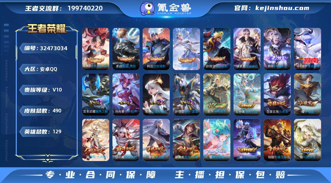 安卓Q-V10-至尊星耀III段位-128英雄-482皮肤-11典藏皮肤-2无双-1珍品传说-78传说-158史诗 【英雄全皮】:元歌全皮,司马懿全皮,姜子牙全皮,孙权全皮,娜可露露全皮,橘右京全皮,敖隐全皮,曜全皮,阿古朵全皮,夏洛特全皮,莱西奥全皮,戈娅全皮,空空儿全皮,影全皮 【荣耀典藏】:孙悟空全息碎影,夏侯惇无限飓风号,孙尚香杀手不太冷,芈月大秦宣太后,程咬金活力突击,李白鸣剑曳影,诸葛亮星域神启,花木兰九霄神辉,关羽赤影疾锋,铠银白咏叹调,韩信弑枪猎影 【无双皮肤】:曜器灵螭龙剑,妲己青丘九尾 【珍品传说】:嫦娥器灵落星盏 【传说皮肤】:后羿神树通天,曹操万灵伏威,元歌诡秘之主,司马懿九山相柳,公孙离云诺千山,西施续相思,司空震愿照山河定,女娲愿照千秋盛,云缨幻光神枪,桑启鸣野蒿,海月金乌负日,亚连落雪白狼,吕布曦玄引,貂蝉曦玄引,典韦战鼓燎原,孙尚香乘龙问璇玑,孙策乘龙淬吴钩,赵云乘龙铭钟鼎,马超琥珀纪元,铠琥珀纪元,澜逐花归海,艾琳觅芳踪,露娜霜月吟,东皇太一灼幽烈阳,澜电玩雷克斯,张飞百相守梦,公孙离记忆之芯,夏洛特浮生妄,干将莫邪画中仙,花木兰燃星之曲,虞姬无限倾心,项羽无限倾心,伽罗炽翼辉光,小乔山...