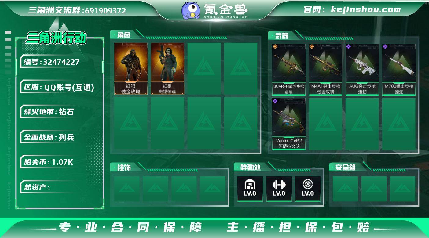 XXSJZ2052【暗星 红狼-蚀金玫瑰】【总资产(M)】17.02【哈夫币】1,075.94【行动等级】60【干员皮肤】露娜-金牌射手 红狼-电锯惊魂 红狼-蚀金玫瑰 乌鲁鲁-荒原猎手【近战武器】黑鹰 暗星【枪皮】K437突击步枪-巨兽 M4A1突击步枪-粉色涂装 M4A1突击步枪-高雅黑 M4A1突击步枪-繁盛 M4A1突击步枪-蚀金玫瑰 AKM突击步枪-锦绣 QBZ95-1突击步枪-高雅黑 QBZ95-1突击步枪-海色 QBZ95-1突击步枪-2026 AKS-74U突击步枪-磐石 AKS-74U突击步枪-冰天雪地 ASh-12战斗步枪-繁盛 K416突击步枪-几何迷彩 K416突击步枪-高雅黑 K416突击步枪-重击 K416突击步枪-一帆风顺 K416突击步枪-冬日风情 K416突击步枪-腊梅 K416突击步枪-行动记录 M16A4突击步枪-高雅黑 AUG突击步枪-浅蓝涂装 AUG突击步枪-蝮蛇 M7战斗步枪-红色涂装 M7战斗步枪-黑巧甜心 M7战斗步枪-重击 M7战斗步枪-捣蛋鬼 M7战斗步枪-百步穿杨 SG552突击步枪-浅蓝涂装 SG552突击步枪-海浪 SG552突击步枪-狂欢 SG552突击步枪-2026 SG552突击步枪-马年新春 SG552突击步枪-贴花艺术 SG552突击步枪-哈夫克警备 SG552突击步枪-运动员 AK-12突击步枪-变色龙 AK-12突击步枪-马年新春 SCAR-H战斗步枪-数码迷彩 SCAR-H战斗步枪-荣耀列队 SCAR-H战斗步...