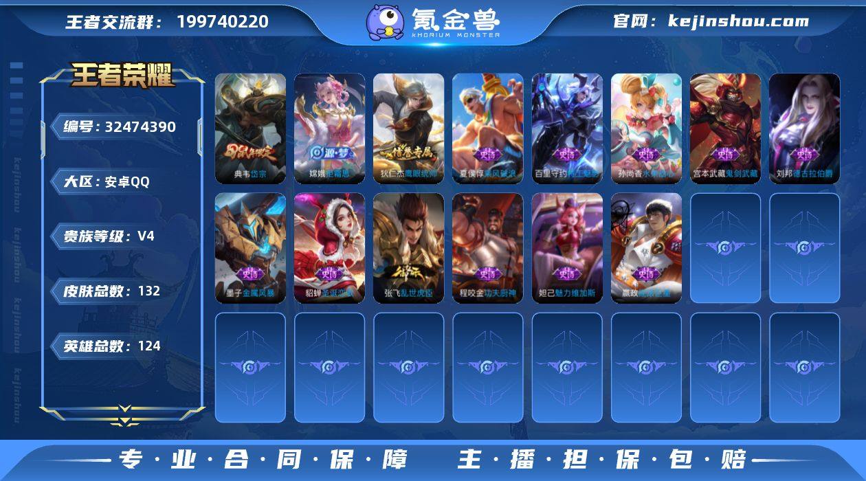 V4 2传说 124英雄 132皮肤 可修改实名 男号