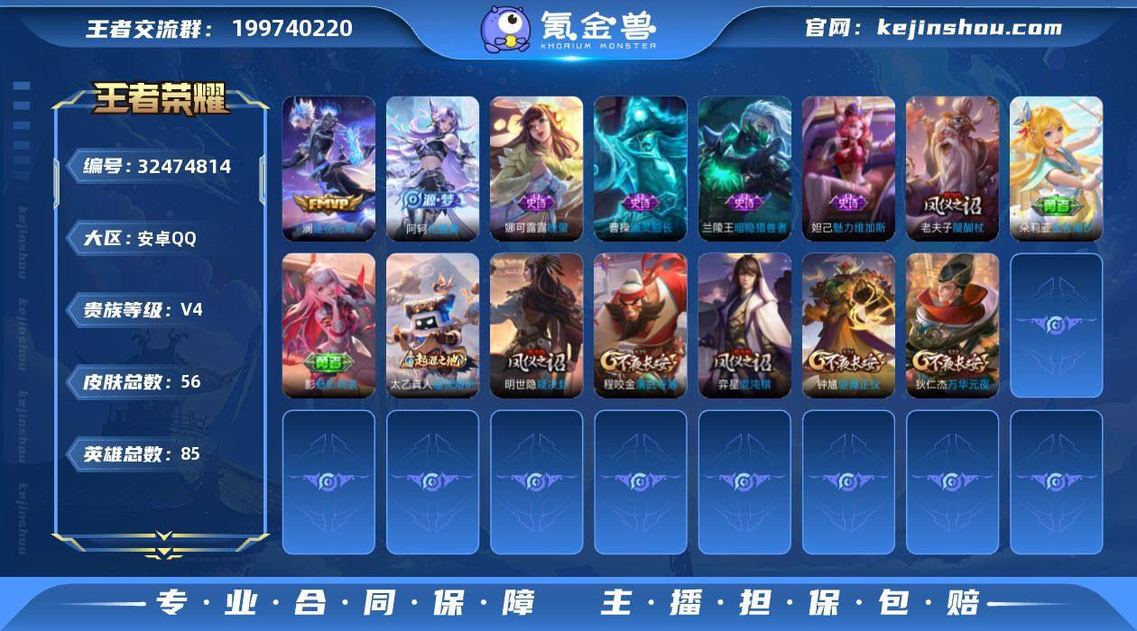JJ4271安卓Q-2传说【V4 可二次 逐花归海 异界灵契 妄想食味 1000星币】-至尊星耀IV-85英雄-56皮肤-2传说-6史诗 1太阳 【稀有英雄】 不知火舞 橘右京 娜可露露 韩信 艾琳 赵云 【传说皮肤】 逐花归海 异界灵契 【史诗皮肤】 妄想食味 魅力维加斯 晚萤 化蝶舞 幽灵船长 暗隐猎兽者 【勇者皮肤】 沉稳之力 醍醐杖 汉昭烈帝 白色死神 黄金武士 阴阳师 海滩派对 万华元夜 演武夺筹 天穹祈灯 疑决卦 阿尔法小队 金色潮汐 死亡骑士 敏锐之力 玩偶对对碰 掌控之力 乓乓大师 兔女郎 万象初新 混沌棋 驱傩正仪 魅影绮裳 谧流熔炉 玫蓝誓约 景韶洛都 【其他皮肤】 伊势巫女 极冰防御线 万圣前夜 灼热之刃 海之征途 魇语军师 午夜歌剧院 花间舞 异域舞娘 蔷薇王座 孤猎 精准探案法