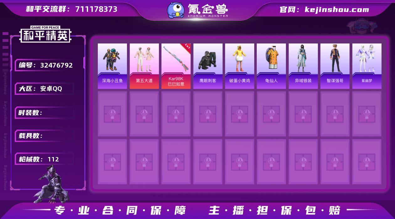 XS11453有二次【3粉装-3特效枪深海小丑鱼身法号 】安卓手Q-3粉装-3特效枪-85套装-112枪皮-5王牌印记-不朽星钻Ⅰ-30349热力值【3粉装】角色-罪夜之冕,角色-异瞳寒姬,第五大道【3特效枪】Kar98K-巳巳如意[5级],Mk14-甜梦熊击[5级],DP-28-豹影疾电[5级]【1稀有】深海小丑鱼【8飞行器】粉色滑翔尾迹,炫彩糖果飞行器,鸡智如我飞行器,破刃行动尾迹,顶峰精英尾迹,登顶巅峰飞行器,狂鲨锋刃飞行器,异域银装飞行器【190其它衣服和枪皮】猛禽,狙击之神,玩偶服-懒羊羊,冷焰舞者,耀粉歌者,黄色运动,元素星魂,幻世战舞者,SS34特训,街头风暴,玲珑侠影,幻影武者,绮丽涂鸦,红釉青花,角色-枫露凝珀,海岛探路者,元气之梦,朱霞炽焰,SS35特训,琴音绮想,猎鹰,青年教官,灼焰舞者,SS30特训,长空猛禽,青涩时光,恋语绒绒,擎苍青焰,粉恋花,街头潮人,星影赞美诗,湖蓝色名流,蓝彩潮人,风迹短诗,异域银装,龟仙人,森林游猎者,黑色伏地魔,战术大师,SS31特训,星途旅人,凌霄紫焰,SS37特训,阳光火鸡,萌鸡速递,暗金炫舞,炫彩糖果,光之冒险,白色伏地魔,香桃花海,青翼流星,书海巡游,漫游都市,龙魂突击队,冰河战士,海盐绵绵冰,蝶变,蓝冰羽,破蛋小黄鸡,酒红色名流,魅力单车,白糯汤圆,薄荷星砂,SS36特训,王牌教练,巳巳如...