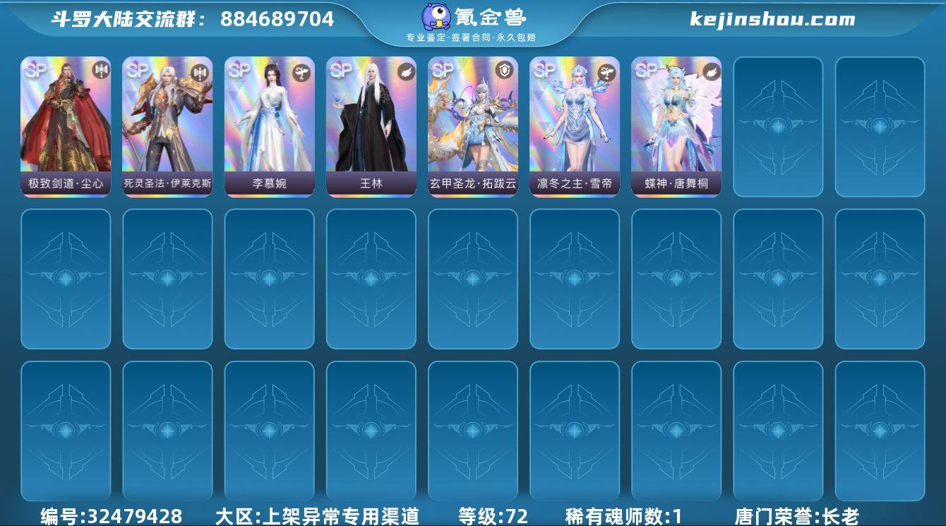 新区无敌72级270亿霸服榜1,战区3。世界等级才70级,互通官服赐福150区。精氪长老氪金1.5万。全图sp+三个都有皮肤,t0魂师李慕婉王林雪帝伊莱克斯全都有。110疯号魔魂团圆圣雪开八槽。(全满4sp战魂导,辅助铠甲,2个光黯头胸骨,4个上阵灵宠,剑仙技能树拉满有大招,魂导红针红瓶子,神器一堆有海神翼。250觉醒券随便拿下个魂师)神三2翅膀3法相14百万神技环,剑仙2专带幻有大招,神雪红五带皮。10神环凶兽75超金眼龙王90魔树千钧60冰蝶天星碧磷云鹤等。互通官服安卓苹果都可以玩可换绑