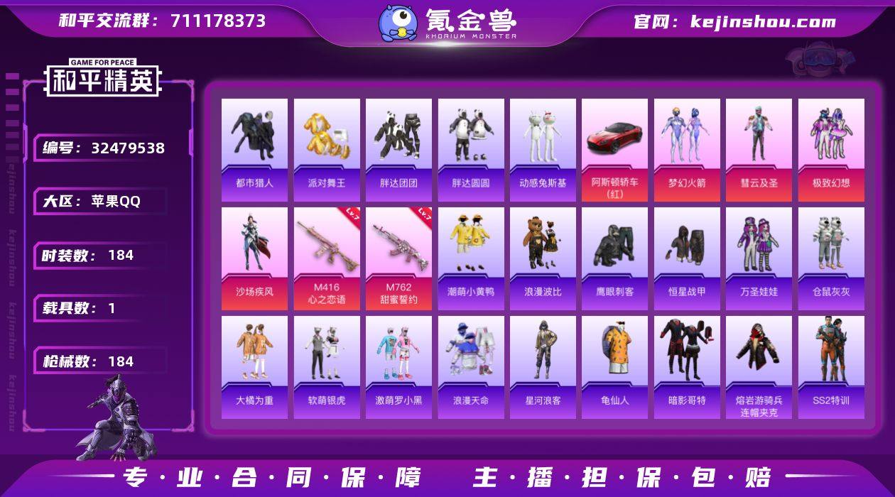 【937444】苹果 【男神号,粉装-梦幻火箭,套装-浪漫天命,套装-都市猎人,套装-派对舞王,套装-暗影哥特,M416-心之恋语(七级),M762-甜蜜誓约(七级),阿斯顿马丁DBS(红)】手Q-4粉装-5特效枪-1载具-1粉色飞行器-64321热力值-17王牌印记-184套装-184枪皮 【热门品类】:粉装-梦幻火箭,套装-浪漫天命,套装-都市猎人,套装-派对舞王,套装-胖达团团,套装-胖达圆圆,套装-星河浪客,套装-动感兔斯基人偶服,套装-龟仙人,套装-潮萌小黄鸭,套装-暗影哥特,套装-浪漫波比,熔岩游骑兵连帽夹克 【粉色套装】:粉装-梦幻火箭,粉装-彗云及圣,粉装-极致幻想,粉装-沙场疾风 【粉色枪皮等级】:M416-心之恋语(七级),M762-甜蜜誓约(七级),UMP45-萌骑冒险(五级),Mk14-福马献瑞(五级),破片手榴弹-招财进宝(七级) 【粉色载具】:阿斯顿马丁DBS(红) 【粉色枪皮】:M416-心之恋语,M762-甜蜜誓约,UMP45-萌骑冒险,Mk14-福马献瑞,破片手榴弹-招财进宝 【粉色飞行器】:梦幻火箭飞行器 【粉色降落伞】:梦幻火箭降落伞,神秘黑猫降落伞,甜蜜誓约降落伞,四圣焕新降落伞,心之恋语降落伞,蓝莓炮弹降落伞,恐龙拽拽降落伞 【稀有套装】:套装-龟仙人,套装-马上来财,套装-雨过...