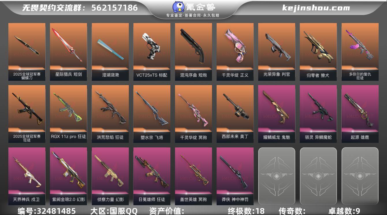 L2829 【性价比】归零獠犬 蒙太奇战斧 异鳞骇灵 紫金爪刀 洪荒狂徒 混沌短炮 显卡狂徒 日冕狂徒 塑水飞将 碎心猎刃 起源雄鹿 西部奥丁 澄湖潋滟 莲花冥驹 多弥尔狂徒 侦查幻影 神中莽侠 光荣判官 盖世冥驹 紫金2.0幻影 星际短剑 莲花正义 25冠军套 库存: 39230剩余VP:25剩余R点:0 段位:铂金1