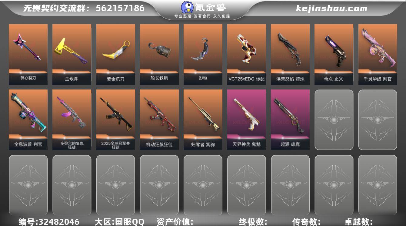 XSQY37【游戏等级】Lv188 【段位】 超凡II 【R点】1,240 【皮肤总价值】45,000 【英雄数量】18 【皮肤数量】102 【挂饰数量】71 【卡面数量】109 【喷漆数量】119 【近战武器】近战武器-碎心裂刃 近战武器-紫金爪刀 近战武器-星际猎兵短剑 近战武器-船长铁钩 近战武器-阿特拉斯指挥部甩棍 近战武器-影钩 近战武器-金琅斧 近战武器-日耀风暴遗器 近战武器-RGX11zPro//2.0蝴蝶刀 近战武器-诡秘蛇影军刀 近战武器-神圣领域战刀 【鬼魅】鬼魅-幻心猎手 鬼魅-天界神兵 鬼魅-瑰梦艺语 鬼魅-掠影//2.0 鬼魅-甜蜜战术 鬼魅-诡秘蛇影 鬼魅-星云暗涌 【幻影】幻影-甜心猎手 幻影-星际猎兵 幻影-源能者娱乐系统 幻影-悠闲猫生 幻影-日耀风暴 幻影-末日之翼 幻影-神圣领域 【冥驹】冥驹-归零者 冥驹-诛心猎手 冥驹-光环序列 冥驹-甜蜜战术 冥驹-星云暗涌 【短炮】短炮-洪荒怒焰 短炮-甜心猎手 短炮-悠闲猫生 短炮-末日之翼 【狂徒】狂徒-机动狂飙 狂徒-幻心猎手 狂徒-RGX11zPro 狂徒-多弥尔的复仇 狂徒-瑰梦艺语 狂徒-2025全球冠军赛 狂徒-海洋之星 狂徒-光荣异象 狂徒-阿特拉斯指挥部 狂徒-归零者 狂徒-离子武器//2.0 狂徒-诡秘蛇影 狂徒-塑水宗 【戍卫】戍卫-甜心猎手 戍卫-天界神兵 戍...