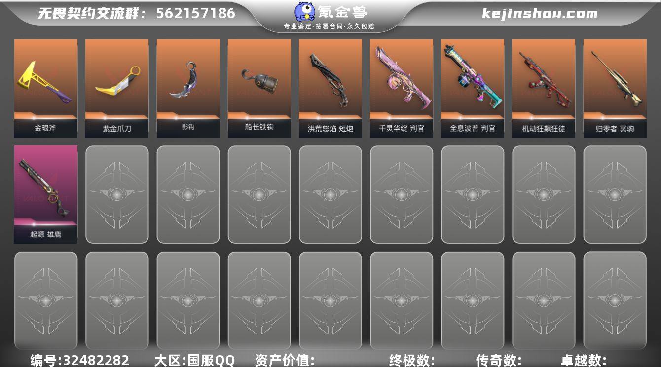 XSQY37【游戏等级】Lv188 【段位】 超凡II 【R点】1,240 【皮肤总价值】45,000 【英雄数量】18 【皮肤数量】102 【挂饰数量】71 【卡面数量】109 【喷漆数量】119 【近战武器】近战武器-碎心裂刃 近战武器-紫金爪刀 近战武器-星际猎兵短剑 近战武器-船长铁钩 近战武器-阿特拉斯指挥部甩棍 近战武器-影钩 近战武器-金琅斧 近战武器-日耀风暴遗器 近战武器-RGX11zPro//2.0蝴蝶刀 近战武器-诡秘蛇影军刀 近战武器-神圣领域战刀 【鬼魅】鬼魅-幻心猎手 鬼魅-天界神兵 鬼魅-瑰梦艺语 鬼魅-掠影//2.0 鬼魅-甜蜜战术 鬼魅-诡秘蛇影 鬼魅-星云暗涌 【幻影】幻影-甜心猎手 幻影-星际猎兵 幻影-源能者娱乐系统 幻影-悠闲猫生 幻影-日耀风暴 幻影-末日之翼 幻影-神圣领域 【冥驹】冥驹-归零者 冥驹-诛心猎手 冥驹-光环序列 冥驹-甜蜜战术 冥驹-星云暗涌 【短炮】短炮-洪荒怒焰 短炮-甜心猎手 短炮-悠闲猫生 短炮-末日之翼 【狂徒】狂徒-机动狂飙 狂徒-幻心猎手 狂徒-RGX11zPro 狂徒-多弥尔的复仇 狂徒-瑰梦艺语 狂徒-2025全球冠军赛 狂徒-海洋之星 狂徒-光荣异象 狂徒-阿特拉斯指挥部 狂徒-归零者 狂徒-离子武器//2.0 狂徒-诡秘蛇影 狂徒-塑水宗 【戍卫】戍卫-甜心猎手 戍卫-天界神兵 戍...