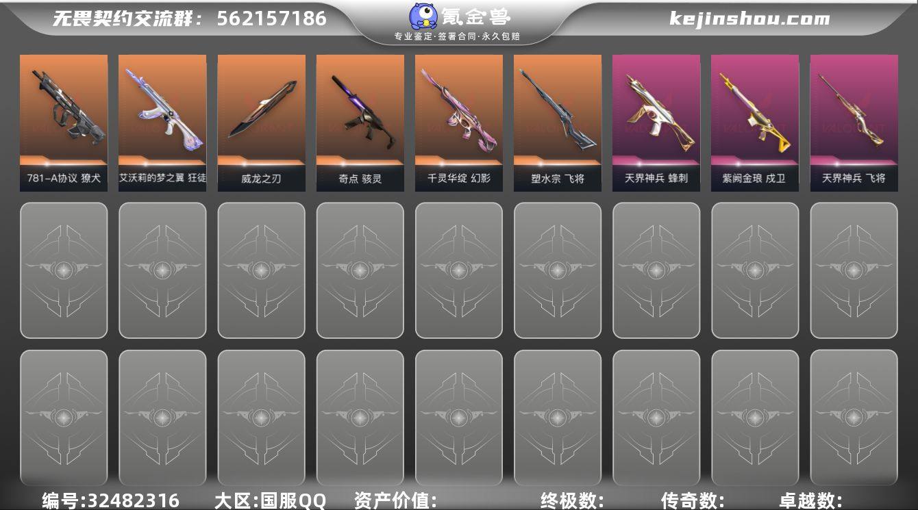 XSQY40【游戏等级】Lv205 【段位】 未定级 【R点】1,275 【皮肤总价值】42,920 【英雄数量】28 【皮肤数量】70 【挂饰数量】74 【卡面数量】116 【喷漆数量】81 【近战武器】近战武器-流风回雪 近战武器-碎心裂刃 近战武器-威龙之刃 近战武器-荒土机兵热能刀 近战武器-超限闪存匕首 近战武器-奇点//2.0蝴蝶刀 【幻影】幻影-异鳞魔蛇 幻影-甜心猎手 幻影-黯夜怪谈 幻影-千灵华绽 幻影-纳米打击 幻影-超限闪存 幻影-奇点 【鬼魅】鬼魅-幻心猎手 鬼魅-宿怨 鬼魅-诡秘蛇影 鬼魅-星云暗涌 鬼魅-模拟赫兹 鬼魅-奇点//2.0 【飞将】飞将-塑水宗 飞将-天界神兵 【标配】标配-电音光谱 标配-星际猎兵 标配-阿特拉斯指挥部 标配-荒土机兵 标配-浮光跃金 【莽侠】莽侠-神中神罚 莽侠-甜心猎手 莽侠-超限闪存 【冥驹】冥驹-诛心猎手 冥驹-掠影 冥驹-荒土机兵 冥驹-模拟赫兹 【戍卫】戍卫-甜心猎手 戍卫-紫阙金琅 戍卫-逆冲蛮牛 戍卫-浮光跃金 【正义】正义-诛心猎手 正义-日耀风暴 正义-纳米打击 正义-超限闪存 正义-奇点 【狂徒】狂徒-幻心猎手 狂徒-上古龙炎 狂徒-掠影 狂徒-塑水宗 狂徒-荒土机兵 狂徒-艾沃莉的梦之翼 狂徒-海洋之星 狂徒-奇点//2.0 【战神】战神-般若假面//2.0 战神-浮...