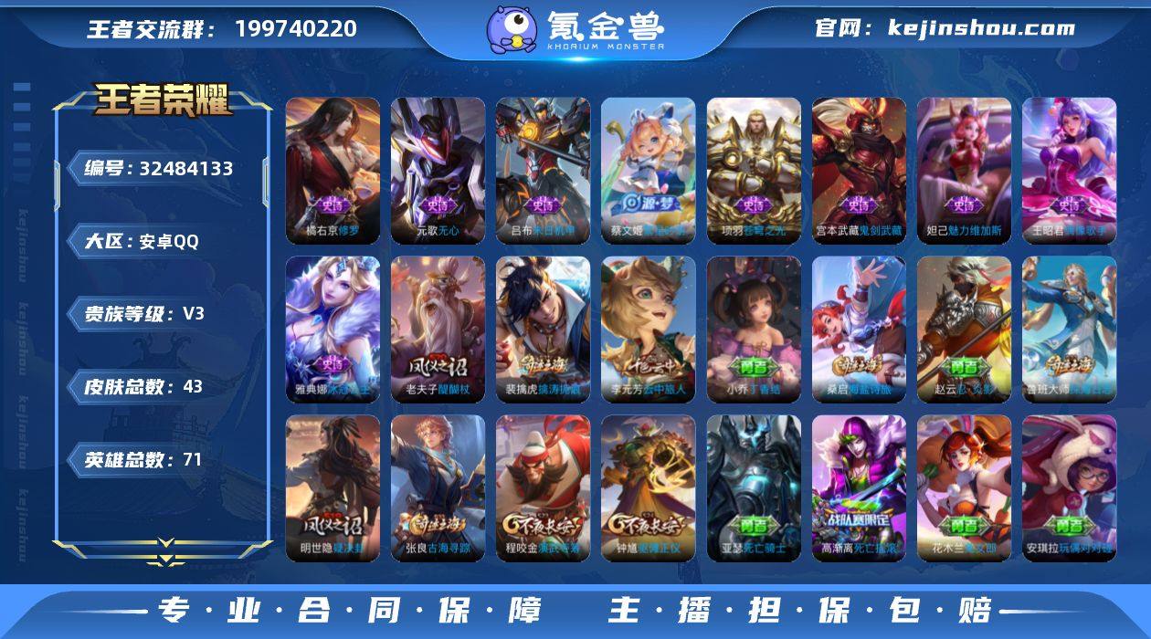 【937494】DYW13369+【v3 9史诗】安卓Q-43皮肤-71英雄 【史诗皮肤】 繁星吟游 魅力维加斯 鬼剑武藏 修罗 末日机甲 偶像歌手 苍穹之光 冰冠公主 无心 【勇者皮肤】 云中旅人 探海日志 海盐诗旅 古海寻踪 死亡摇滚 兔女郎 醍醐杖 无尽征程 疑决卦 丁香结 死亡骑士 忍·炎影 花好人间 驱傩正仪 擒涛扼浪 大漠名商 玩偶对对碰 演武夺筹 阴阳师 万华元夜 黄金武士