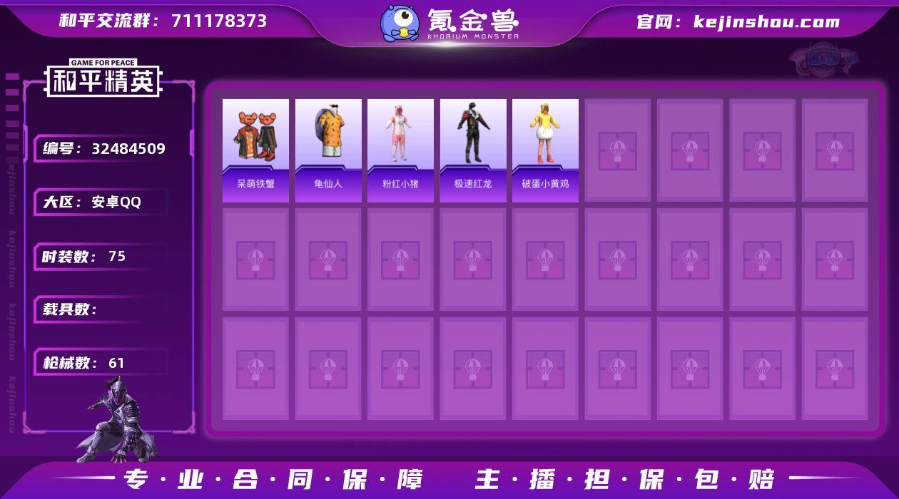 【937463】DYH18008【无敌战神框】安卓手Q-1特效枪-75套装-61枪皮-6王牌印记-卓越王牌15星-17261热力值【1特效枪】Mk14-福马献瑞[2级]【1飞行器】马上有福飞行器【135其它衣服和枪皮】柠萌假日,战地督导,麻辣教官,霓虹街区,绯格组合,冷焰舞者,竞技名士,黄色名流,猛禽,绮丽涂鸦,牛气满满,耀粉歌者,特训学院,炫蓝之夏,SS20特训,SS22特训,粉红小猪,雨过天青,深蓝色名流,都市魅力,SS23特训,角色-紫俏灵猫,SS21特训,猎鹰,都市漫游者,黑色伏地魔,SS26特训,龟仙人,骑行爱好者,牛气冲天,玉兔迎春,疯狂小兔子,蓝彩潮人,完美偶像,橘黑制服,极速红龙,幻影武者,破蛋小黄鸡,SS37特训,呆萌铁蟹,SS18特训,龙的传人,青年教官,萌黄之夏,白色伏地魔,SS24特训,SS25特训,蓝色运动,灼焰舞者,街头潮人,特种颜团子,海盐绵绵冰,SS17特训,缤纷果语,夏日音浪,元素星魂,怒火燎原,黄色运动,幻世战舞者,竞技达人朋克,狙击之神,人气偶像,SS28特训,探宝勇士,SS19特训,王牌教练,SS36特训,长空猛禽,红釉青花,魅力单车,滨海厨神,黄色伏地魔,湖蓝色名流,红色运动,酒红色名流,Kar98K-红色方程式,莫辛纳甘-乌木金纹,Mk47-乌木金纹,GROZA-生命誓言,AA12-G-雨过天青,UZI-极光之刃(应用宝),AC-VAL-天降萌叽,平底锅-绯红...