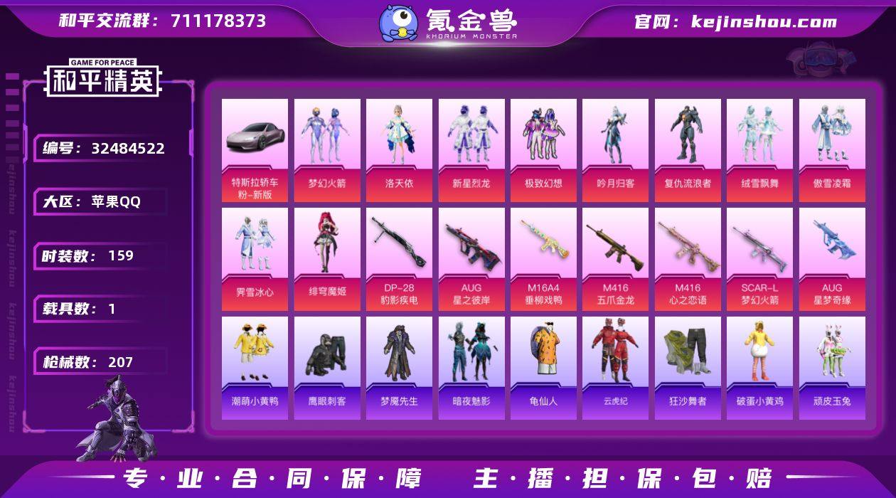 【937598】DYH18040【AUG-星梦奇缘[3级]1载具-10粉装-10特效枪 AUG-星之彼岸[7级] 五爪金龙满级 梦幻火箭 复仇流浪者 洛天依】苹果手Q-1载具-10粉装-10特效枪-159套装-207枪皮-11王牌印记-坚韧铂金Ⅱ-67634热力值【1载具】特斯拉Roadster(沁心粉)【10粉装】角色-绯穹魔姬,绒雪飘舞,梦幻火箭,新星烈龙,角色-洛天依,吟月归客,傲雪凌霜,霁雪冰心,极致幻想,角色-复仇流浪者【10特效枪】M16A4-垂柳戏鸭[2级],AUG-星梦奇缘[3级],AUG-星之彼岸[7级],AKS-74U-森灵之息[5级],M416-心之恋语[1级],AA12-G-萌骑幻想[5级],DP-28-豹影疾电[5级],Mk14-福马献瑞[5级],SCAR-L-梦幻火箭[4级],M416-五爪金龙[7级]【1稀有】狂沙舞者【7飞行器】炫彩糖果飞行器,梦幻火箭飞行器,马上有福飞行器,鸡智如我飞行器,极意拳锋飞行器,粉色滑翔尾迹,红色滑翔尾迹【4头盔】百万伏特头盔,梦幻火箭头盔,童趣迷兔头盔,夏日绵绵冰头盔【2背包】幻影战神背包,梦幻火箭背包【345其它衣服和枪皮】森林游猎者,SS15特训,青年教官,霓虹极客,暗夜魅影,福马献瑞,怒火燎原,霓虹街区,都市漫游者,海上生明月,朱霞炽焰,角色-英勇保护者,角色-霜刃之御,狙击之神,飞驰魅影,缠丝流银,鹰眼刺客,白熊同盟,角色-军刀雅典娜,柠萌假日,...