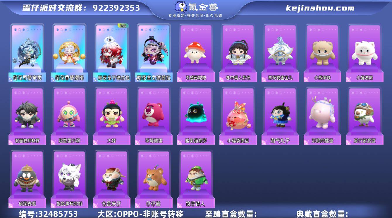 账号类型: 手机账号 段位: 二阶鸽子蛋 热门装扮: 仔仔熊,淘气丸子,饶舌诗人,仓鼠米仔,沉眠的螺壶,暗夜皇女德茜拉,幽灵猫妮莎,狼执事柯尔特,暗夜皇子德古拉,草莓熊蛋,旅行家渡渡,小福袋添运,大娃,侦探麦嘎,超燃蛋小粉,双面教师林野,小猫慕斯,小熊拿铁,青花瓷盖宝儿,卷中美人芳仪,衔花香使璎珞,衔花司使辛夷,灵感菇粒粒