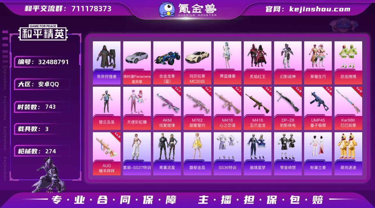 3载具 8升级枪 7粉装 2尾迹 273枪皮 195套装 91939热力 18印记 星钻