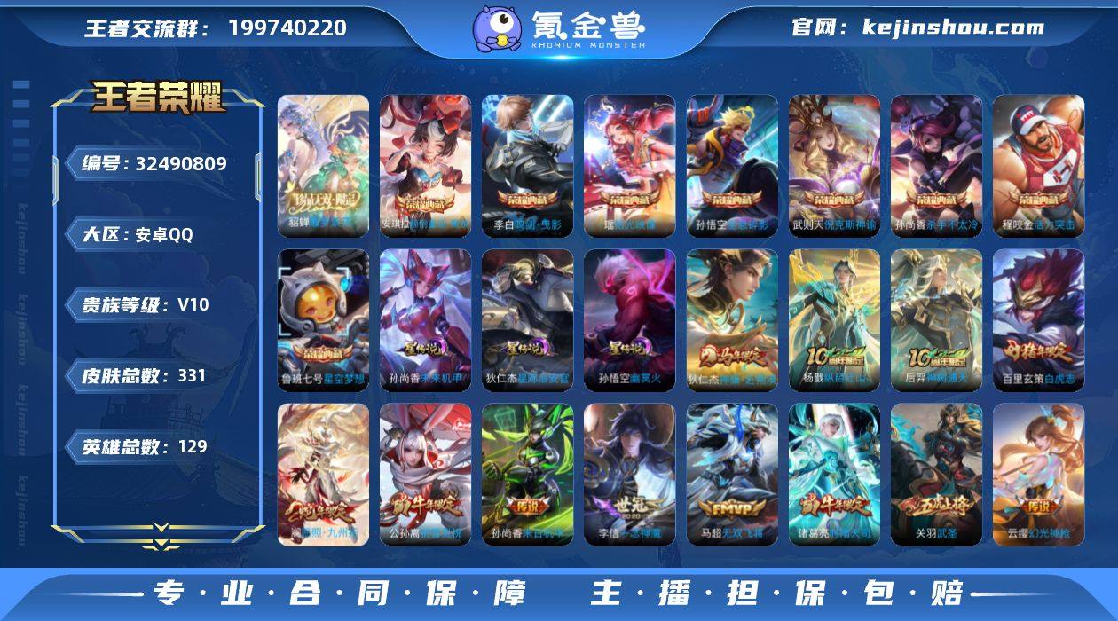 这是一个高氪度、高收藏价值的王者荣耀账号,核心优势十分突出。 账号已集齐全部129位英雄,皮肤总量达331款,图鉴等级61级,收集进度完成度高。最亮眼的是9款荣耀典藏皮肤,涵盖貂蝉、安琪拉、瑶、李白、武则天、程咬金、孙悟空、鲁班七号、孙尚香等热门英雄,是账号价值的核心支撑,代表了游戏内最高规格的皮肤品质。 在稀有限定皮肤方面,账号储备丰富:包含多系列年限皮肤(如兔年限定、蛇年限定)、10周年限定皮肤,以及FMVP系列(干将莫邪久胜战神、貂蝉猫影幻舞等)、贵族限定、战令限定等稀缺款式。热门传说皮肤同样齐全,如百里玄策白虎志、孙悟空地狱火、关羽武圣、马超无双飞将等,覆盖打野、中路、射手、对抗路全位置,满足不同玩法偏好。 此外,账号还拥有42款星元皮肤,部分为荣耀典藏配套星元,进一步提升了皮肤的个性化与稀有度;同时配备2款天幕特效,让对局展示更具视觉冲击力。联动限定皮肤如灵犀约定、妄想奇谈等,也为账号增添了独特收藏价值。 整体来看,这是一个全英雄、多典藏、满限定的顶级账号,无论是日常排位、巅峰赛冲分,还是社交展示,都具备极强的排面与竞争。