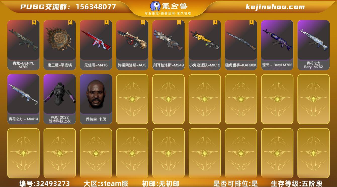 JDPX13444 生存500级可排位/9级青龙-BERYLM762/6级时光加农-SKS/4级妖魔之触-ACE32/妖魔之触-ACE32(黄色配蓝绿色)/1级寒蚀-MP5K/1级刻耳柏洛斯-M249/1级弥诺陶洛斯-AUG/1级无信号-M416/2级唐三藏-平底锅/1级小兔巡逻队-MK12/1级猛虎猎手-KAR98K/1级时空使者-M416/蓝色魔法烟枪/翡翠色烟雾弹/武器神龛/保时捷(4门吉普)/布加迪普通版/aespa-WINTER/黑鬼/吴彦祖/红毛/尼尔头/滑雪镜/红面具/金面具/白战神/白熊套/发光手臂/Pigff战术突击夹克/Pigff干扰背包/太阳之子电池干扰背包/星魂白运动/拉风龙-风华套装/红鞋/ 0B9D3R号 黄金IV, 生存等级2500, 名誉等级3, 金标数量12, 图纸1, 聚合物3969, 枪皮数量425, [成长型] 青龙 - Beryl M762[9级], [成长型] 无信号 - M416[1级], [成长型] 弥诺陶洛斯 - AUG[1级], “Cayenne Turbo GT”SUV, “Chiron” 跑车, “帮派” SUV