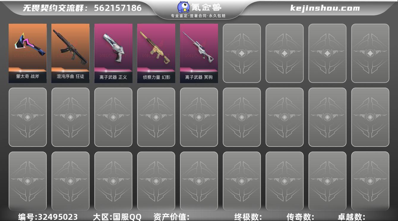 【无畏契约】等级:38,已用无畏点9630,已用源晶点215,橙皮:近战-紫金爪刀|狂徒-混沌序曲|狂徒-RGX 11z Pro|近战-蒙太奇 战斧__紫皮:幻影-侦察力量|冥驹-离子武器|正义-离子武器__段位:未定级__英雄:黑梦|暮蝶|幽影|奇乐|炼狱|贤者|猎枭|芮娜|捷风|不死鸟|幻棱__绿皮:战神-蒙太奇|幻影-蒙太奇|狂怒-蒙太奇|骇灵-蒙太奇__蓝皮:雄鹿-风暴之子|戍卫-风暴之子|正义-风暴之子|冥驹-风暴之子|狂徒-超集系统|标配-超集系统|飞将-超集系统