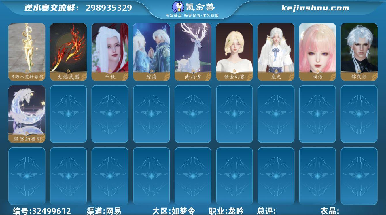 【区服】 仲夏绮梦 【战力值】 166.5 【职业】 龙吟 【馆藏】 6级 【衣品值】 249605 【国色值】 84910 【已用天赏石】 20 【天霓染数量】 2 【充值称号】 把酒临风 【累计充值】 34833元 【天霓染】 白夜俘获*1, 双蕊*1 【灵韵内功】 锐锋, 熔甲, 梵铃诀, 断金戈, 破戟 【副本外观】 白夜拂雪*3, 星落月皓 【天赏外观】 虔心, 蚀金幻雾, 觅光, 锦夜行, 喵语, 琼海, 千秋, 火焰武器, 日曜八荒·轩辕剑 【天赏祥瑞】 轻冥幻夜轩, 南山雪 【祥瑞坐骑】 风行·江湖景, 风行·世间情, 风行·万灯明, 呆宝, 布丁, 云螭·庆舞迎春, 云螭·封冰怀雪, 云螭·探宇寻寰, 龙衔瑞焰, 风行·谦谦有礼, 金冠鼠鼠, 纵风甲车·赤, 粉黛娇, 幻琉晶, 狂霸天, 秋霜橘, 星河转·银昼, 星河转·金夕, 星河转·赤夜, 骋风叱焰, 抟乌镇妖, 伯力, 咩郎, 瓜皮, 英杰, 墨流云·玄色, 墨流云·朱红, 奔虹赤, 彩虹小马, 聆音及昼, 腾云逐日, 犬威哮月, 犬威哮月·沧, 银砂素波, 玉霄飞练, 绒绒夜, 隐云涧, 空山闲 【商城外观】 菲菲甜心, 海盐甜梦, 宝禄纳财, 月光奏鸣, 如约鹅至, 幻核星芒, 雪庭问宋, 甜宙漫游, 墨喧雪绒, 粉蔷曳风, 佛心膳缘, 雾都往事, 雾蓝星瞳, 烟雨裁春, 苍蓝微风, 逸夏浮澜, 羽信絮梦, 烹椒听雀,...