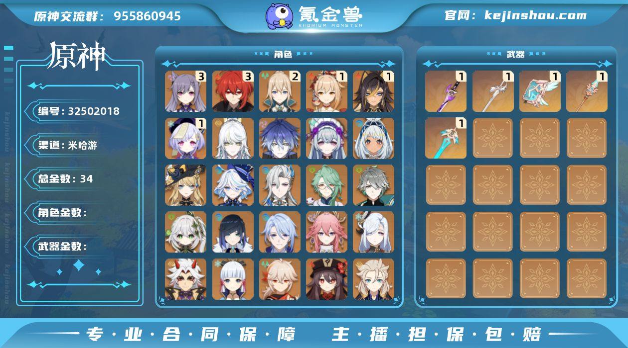 邮箱: 不送邮/死邮 总黄数: 34 冒险等级: 60 3命金色角色: 三命迪卢克,三命刻晴 2命金色角色: 二命琴 1命金色角色: 一命宵宫,一命七七,一命迪希雅 0命金色角色: 温迪,枫原万叶,神里绫华,达达利亚,钟离,阿贝多,胡桃,荒泷一斗,申鹤,八重神子,神里绫人,夜兰,提纳里,纳西妲,艾尔海森,白术,那维莱特,芙宁娜,娜维娅,玛拉妮,梦见月瑞希,菲林斯,兹白 1精武器: 雾切之回光,天空之卷,风鹰剑,天空之刃,天空之脊