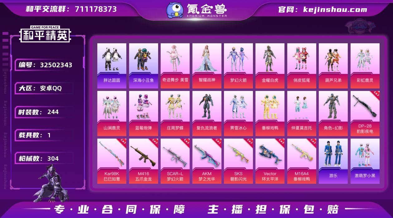 【梦幻满级五爪 14粉装8特效枪1载具 可秒换绑不用等】 安卓Q区-99191热力值-244套装-304枪皮 【1载具】 兰博轿车灰色【1稀有】 胖达圆圆【14粉装】 梦幻火箭 山涧鹿灵 彩虹鹿灵 庄周梦蝶 复仇流浪者 蓝莓炮弹 垂柳戏鸭 霁雪冰心 葫芦兄弟 仲夏莫吉托 金曜白虎 俏皮狐尾 角色-智耀战神 角色-奇迹舞步 美雪【8特效枪】 SCAR-L-梦幻火箭(5级) SKS-碧影闪光(4级) M416-五爪金龙(7级) AKM-梦之光华(5级) M16A4-垂柳戏鸭(5级) Vector-环太平洋(5级) Kar98K-巳巳如意(5级) DP-28-豹影疾电(5级)【77热门】 M416-蓝色火焰 GROZA-异彩先驱 粉甜马卡龙 GROZA-彩虹符号 M762-镭射皇者 长空猛禽 异彩先驱 虚音幻奏 甜心亚梦 甜蜜熊情侣 山涧鹿灵 牛气冲天 霓虹街区 霓虹极客 妙红点点 浪漫天命 雪山精英(老6服) 鹰眼刺客 静谧青瓷 抹茶蜜豆 水银刺客 机械英豪 破蛋小黄鸡 暴走罗小黑 激萌罗小黑 小丑鱼 深海小丑鱼 金羽特工 胖达圆圆 裁决冥王 暗影哥特(红眼罩) 极速红龙 团圆交子 瑞龙福将 狂沙舞者 彩虹鹿灵 GROZA-林间仙鹿 白色伏地魔 SS9特训 SS8特训 SS6特训 SS3特训 SS2特训 SS27特训 SS25特训 SS24特训 SS23特训 SS22特训 SS10特训 Mini14-千面幻镜 Mini14-梦幻火箭 M762-乌木金纹 K...