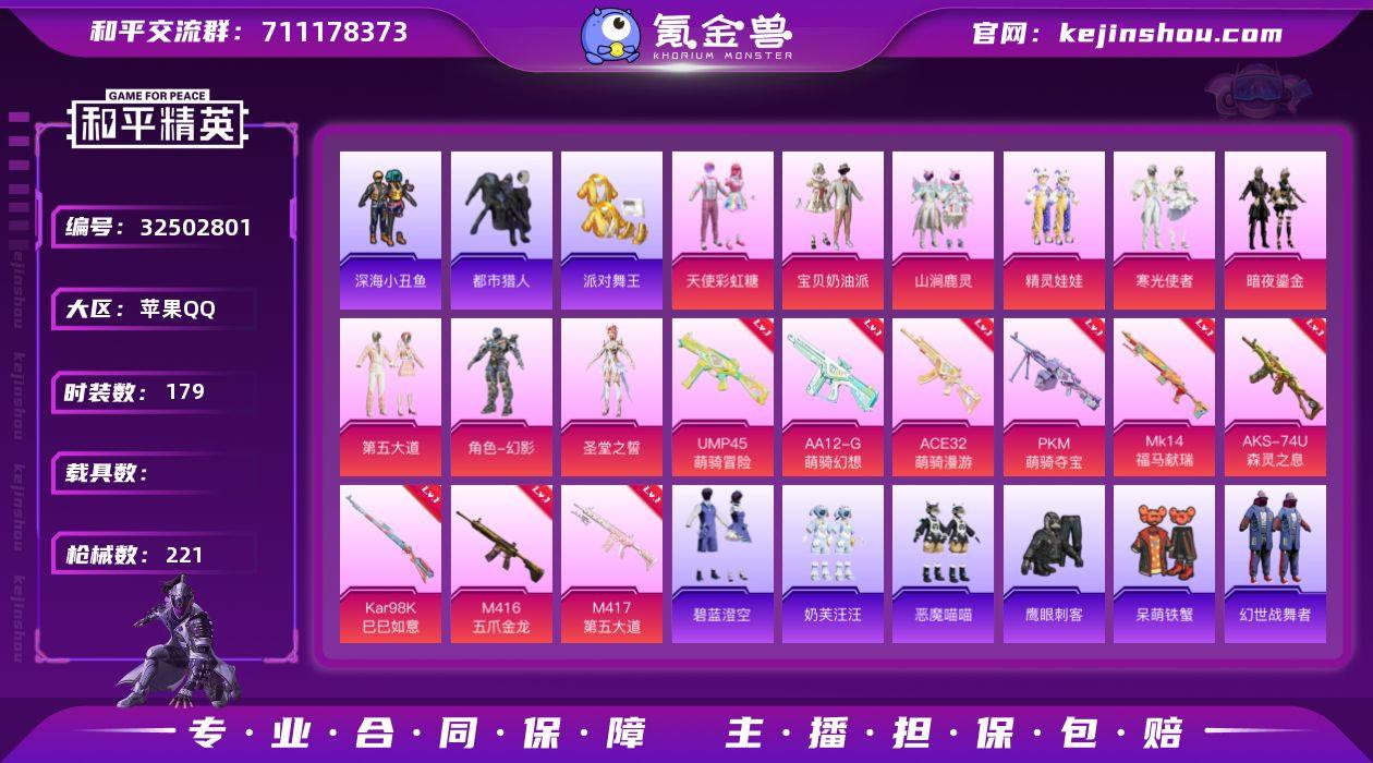 【都市金鞋五爪金龙 10粉装9特效枪 可秒换绑不用等】 苹果Q区-67392热力值-179套装-221枪皮 【2稀有】 都市猎人 派对舞王(金靴子)【10粉装】 宝贝奶油派 圣堂之誓 山涧鹿灵 第五大道 新星烈龙(小白龙) 天使彩虹糖 寒光使者 精灵娃娃 暗夜鎏金 碧蓝澄空【9特效枪】 M416-五爪金龙(7级) M417-第五大道(4级) Mk14-福马献瑞(5级) AA12-G-萌骑幻想(1级) AKS-74U-森灵之息(5级) UMP45-萌骑冒险(1级) ACE32-萌骑漫游(5级) PKM-萌骑夺宝(5级) Kar98K-巳巳如意(5级)【52热门】 M416-蓝色火焰 GROZA-彩虹符号 长空猛禽 弄潮海豚 虚音幻奏 甜心亚梦 甜蜜熊情侣 圣堂之誓 山涧鹿灵 牛气冲天 霓虹街区 妙红点点 浪漫天命 都市猎人(蓝口罩) 雪山精英(老6服) 鹰眼刺客 恶魔喵喵 破蛋小黄鸡 小丑鱼 深海小丑鱼 暗影哥特(红眼罩) 极速红龙 团圆交子 瑞龙福将 纯白誓言 狂沙舞者 白色伏地魔 SS6特训 SS27特训 SS26特训 SS25特训 SS24特训 SS23特训 SS22特训 M24-未来战士 M24-歌者泠鸢 Kar98K-电玩视界 AKM-缤纷海域 SCAR-L-玉兔迎春 GROZA-田园牧歌 M762-天降萌叽 M762-彩虹符号 Mk47-乌木金纹 SKS-糯团青竹 UZI-娇憨猪猪 UMP45-蓝色火焰 DBS-彩虹符号 MG3-幻世战舞者 AKM-虎虎生威 呆萌铁...