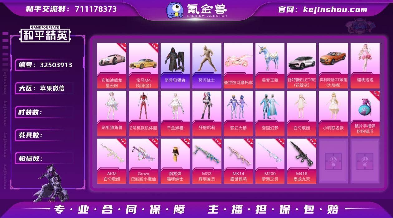 编号20412 3螳螂 猪妹 金鞋 新101 木乃伊 星弥 白勺 冰雪 小丑女 稻草人 严莉莉 美雪 美琪 千金淑猫 樱桃泡泡 第五大道 甜梦小狐 暖熊萌萌 4计数 辉羽 盛世 梦海 墨龙 🈵级猫爪手雷 🈵级小魔仙 🈵级甜梦 🈵级烟雾弹 🈵级布加迪 5️⃣级宝马 宾利 晶梦🐴 39粉装25特效🔫6载具🚗1✈️