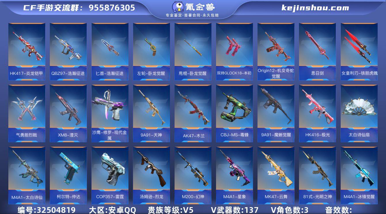 TZ2959可二次【V5 137V 星象 王心 王魂 COP 357-雷霆 COP 357-堕天神】【等级】101【区服】手Q-安卓【金角色数】3【金武器数】137【金V角色】萝拉 零-新生 祝融夫人【金V武器】QBB95-极光 AK47-血武士 M4A1-雷神 手雷-竞界荣光 双持斯泰尔-天使 47-鼓龙 沙鹰-修罗 PP19野牛-造纸术 AK47-黑鲨 AK47-黑鲨 剑齿虎-炫彩 QSZ92-华夏传说 加特林-堡垒 沙鹰-修罗 巴雷特-毁灭 9A91-天神 黑骑士闪光弹 燃烧弹-黑骑士 黑骑士烟雾弹 麒麟刺 神罚战斧 汤姆逊-烈龙 加特林-堡垒 AK47-木兰 AWM-指南针 擎天 巴雷特-毁灭 沙鹰-修罗 沙鹰-修罗 秋逸觉醒 唐刀-大唐荣耀 M4A1-太白诗仙 雷神手雷 雷神闪光弹 雷神烟雾弹 地狱烈炎 AK47-谜城烟火 AK47-无影 尼泊尔-冰锋觉醒 USP-机械迷城 M4A1-冰锋觉醒 AWM-天龙 81式-光明之神 47-云舞 气勇胆烈戟 手斧-机械迷城 AN94-精卫填海 尼泊尔-机械纪元 炽芒蝶刃 加特林-炼狱 高爆手雷-雷暴 XM8-湮灭 柯尔特-仲达 马来剑-耀金伯爵 破邪蛇棍觉醒 9A91-魔蜥觉醒 COP 357-雷霆 高爆手雷-无限 蟒蛇-鼓龙 QBZ191-封神榜 屠龙 龙爪手-鼓龙 高爆手雷-雷暴 USP-神罚 烟雾弹-星象 Origin12-机变奇蛇觉醒 双持GLOCK18-本初 燃烧弹-星象 M200-幻神 M4A1-星象 机械纪...