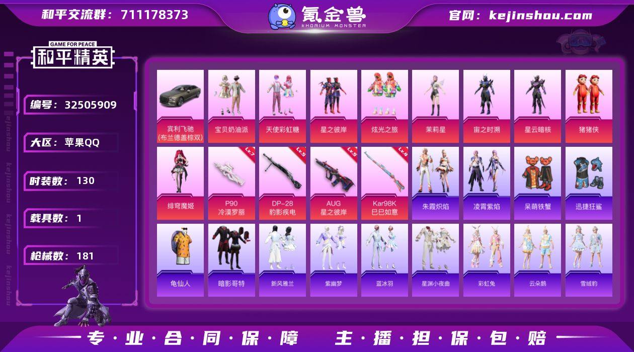 YZJ16010-可二次-苹果Q-1稀有1载具10粉装5特效枪8热门130套装180枪皮 56680热力值 精品小女号 299扭蛋碎片未使用 双字ID(授辁)极地冰晶 巧克力二姐妹 茉莉星 炫光之旅 星之彼岸 绯穹魔姬 红眼罩 鲨鱼服 裁决冥王 许愿神龙伙伴 满级P90冷漠罗丽 4印记 历史超级王牌9星 【1稀有】 AKM-缤纷海域 【1载具】 宾利飞驰布罗德盖棕双色 【10粉装】 猪猪侠 绯穹魔姬 茉莉星 宝贝奶油派 天使彩虹糖 炫光之旅 宙之时溯 星云暗核 星之彼岸 【5特效枪】 P90-冷漠罗丽 (7级) Kar98K-巳巳如意 (4级) DP-28-豹影疾电 (5级) AUG-星之彼岸 (5级) UMP45-萌骑冒险 (4级) 【8热门】 龟仙人 呆萌铁蟹 迅捷狂鲨 裁决冥王 暗影哥特 破蛋小黄鸡 S686-奇异狩猎者 AUG-魔法学院 【2飞行器】 星之彼岸飞行器 黄族统领飞行器 【2头盔】 甜心宝贝头盔 金风玉露头盔 【2背包】 甜心宝贝背包 深海小丑鱼背包 营地ID:781802356