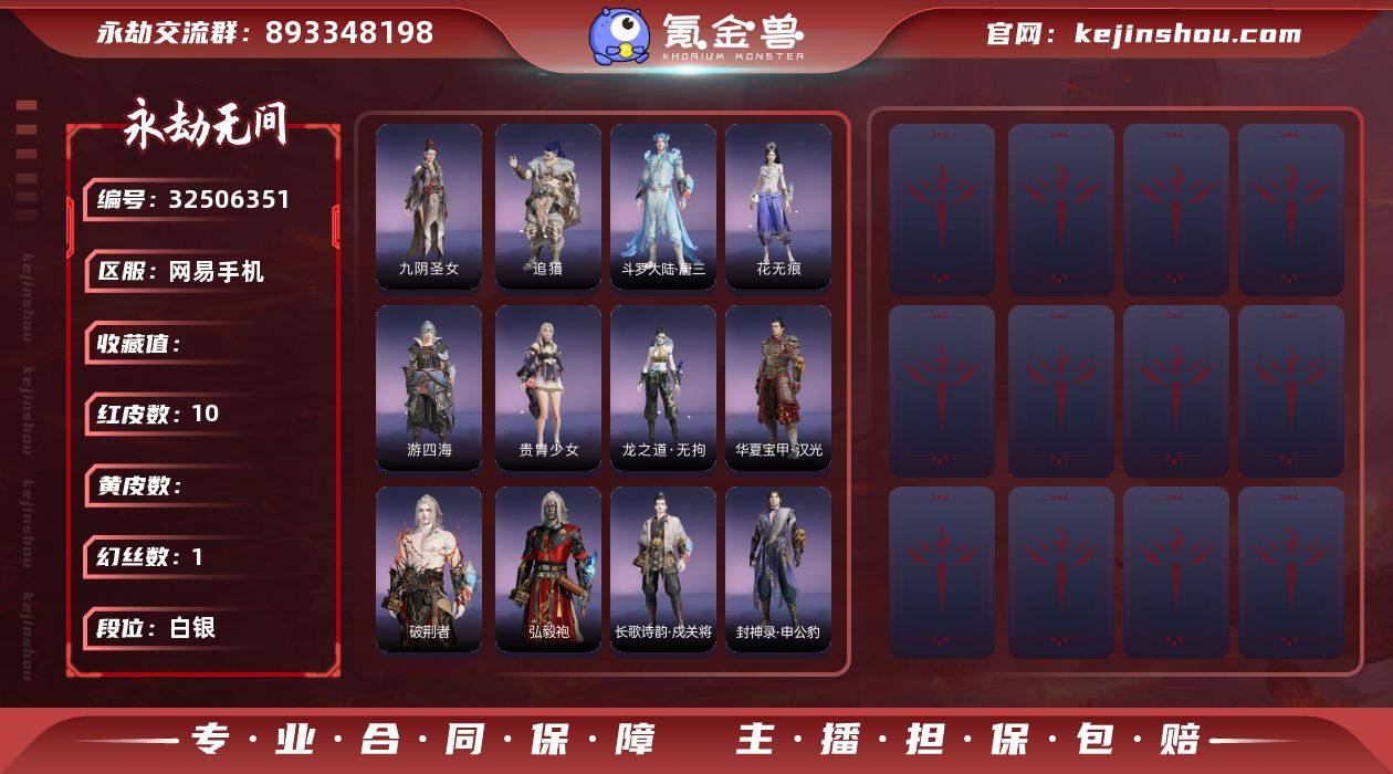 WYJ506【10红 30金 1龙之道 监兵凶神 帝星】 【游戏等级】242【大区】国服【排位】陨星Ⅱ【神品皮肤】 龙雀 星辉魔纱 帝星 麒麟魄 监兵凶神 墨离 少阳剑 泣珠龙纱 灵狐幻刃 化生明王 【极品皮肤】 天虹咏 赤焰战灵 护世四法·广目天王 封神录·申公豹 封神录·姜子牙 观山海·獬豸 街头狂欢·涂鸦少女 斗罗大陆·唐三 长歌诗韵·戍关将 神乌造像 云溪仙子 追猎 御宅罗梦 游四海 玄青郁离 麟鹿大铠 九阴圣女 华夏宝甲·汉光 弘毅袍 贵胄少女 赤雾烟霞 新魔杰·斩魔天将 玉衡天君 观山海·春神句芒 梨园传奇·丽娘 花无痕 百战·破荆者 代号·冰凌 龙之道·无拘 煦阳漫叙 【龙之道】龙之道·无拘