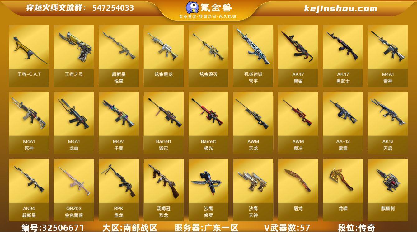 DYCF089【59V】【等级】100【区服】广东一区【VIP】2【段位】传奇4【英雄角色】2【英雄武器】57【王者级武器】超新星-悦享 王者之灵【炫金级武器】炫金黑龙 炫金黑龙 炫金黑龙 炫金毁灭 炫金骑士【英雄级角色】葵【英雄级武器】Barrett-极光 AA-12-雷霆 M4A1-雷神 Barrett-毁灭 机械迷城-穹宇 高爆手雷-竞技荣光 烟雾弹-竞技荣光 高爆手雷-竞技荣光 高爆手雷-竞技荣光 烟雾弹-竞技荣光 擎天-竞技荣光 闪光弹-竞技荣光 AK47-B-战士 AK-47-猩红传说 汤姆逊-烈龙 屠龙 擎天 高爆手雷-雷暴 烟雾弹-雷暴 闪光弹-雷暴 AK47-黑鲨 AA-12-雷霆 斩神刀-雷暴 高爆手雷-雷暴 烟雾弹-雷暴 闪光弹-雷暴 Barrett-毁灭 擎天 AWM-天龙 麒麟刺 沙鹰-天神 AK47-黑武士 Barrett-毁灭 Barrett-毁灭 M4A1-死神 Barrett-毁灭 沙鹰-修罗 麒麟刺 Barrett-毁灭 麒麟刺 Barrett-毁灭 M4A1-龙血 AN94-超新星 QBZ03-金色蔷薇 RPK-盘龙 M4A1-千变 龙啸 汤姆逊-烈龙 Barrett-毁灭 沙鹰-天神 沙鹰-修罗 AK12-天启 屠龙 AWM-裁决 汤姆逊-烈龙 汤姆逊-烈龙 擎天【挑战级武器】末日裁决者 激光毁灭者III 乱世-超越3 迷你白狐【精英级武器】死亡之眼 M14EBR-赤血龙魂 EVO III-赤血龙魂 M200-赤血龙魂 M14EBR-赤血龙...