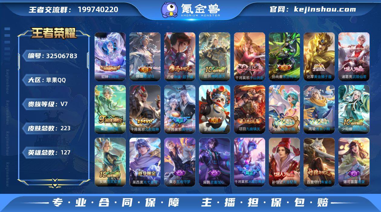 【937945】[17751572]V7 1典藏 11传说 127英雄 223皮肤 可修改实名 男号 【英雄全皮】孙权全皮,影全皮,大禹全皮 【稀有英雄】大司命,嬴政(始皇帝),韩信(韩跳跳),夏洛特(夏师傅),艾琳,橘右京(橘子),娜可露露(鸟人),不知火舞,赵云,金蝉(唐僧),戈娅 【荣耀水晶】幻阙歌(貂蝉典藏) 【传说皮】神骥·越千峰,踏浪归,神树通天,千山共赴,黄金狮子座,末日机甲-孙尚香(绿蚂蚱),久胜战神,胖达荣荣,画中仙 【珍宝阁皮】胡桃夹子,女武神 【赛季/战令皮】噬灭天穹(s37),古海寻踪(s33),探海日志(s32),顽趣-梦奇,剑破天穹(s35),天穹祈灯(s34),青焰无极,苍威无极,天穹之誓(s36),蔡文姬夏日便利店,虞姬夏日便利店,重明(s11),御狮(s13),御霄(s14),御銮(s16),朔风刀(s17),混沌棋(s18),醍醐杖(s20),原初探秘者(s21),万华元夜(s22),演武夺筹(s23),朔望之晖,赤莲之焰,驯魔猎人,星空之诺,银河之约,单词大作战,狂想玩偶喵 【史诗皮】星界战将,蒙犽顽岩魄,线条小狗-周瑜,九幽镇关,线条小狗-小乔,巫礼祀神,万灵启世,光弋星穹,灵蛊蚀心,百相守梦-黄忠,紫霞仙子,电玩小子(小书包),白龙吟,黄金分割率,特工魅影,千年之狐,江河有灵,百解令(蒙犽),高渐离燃音魔法,冰冠公主,偶像歌手,晚萤,龙骑士(小龙虾),魅语,猫...