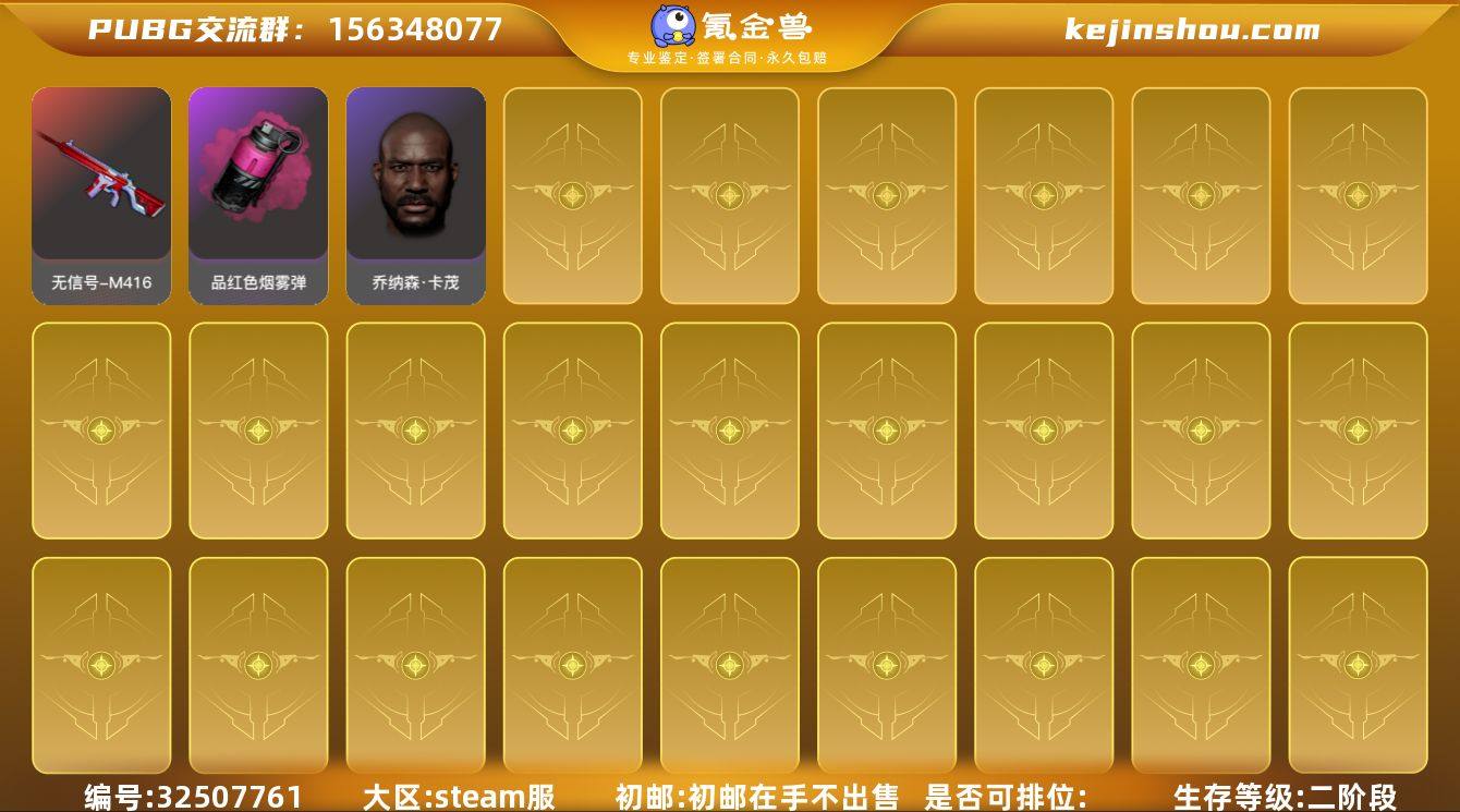 初邮情况: 无初邮 是否可排位: 是 亮点: 三段140多级,7图纸,青龙7南瓜2 朱雀1 圣诞ak1 玩偶大炮1 小兔mk1,黑鬼。白色战神裤,黑色绷带手套,白虎背包,所有枪皮几乎都有皮肤
