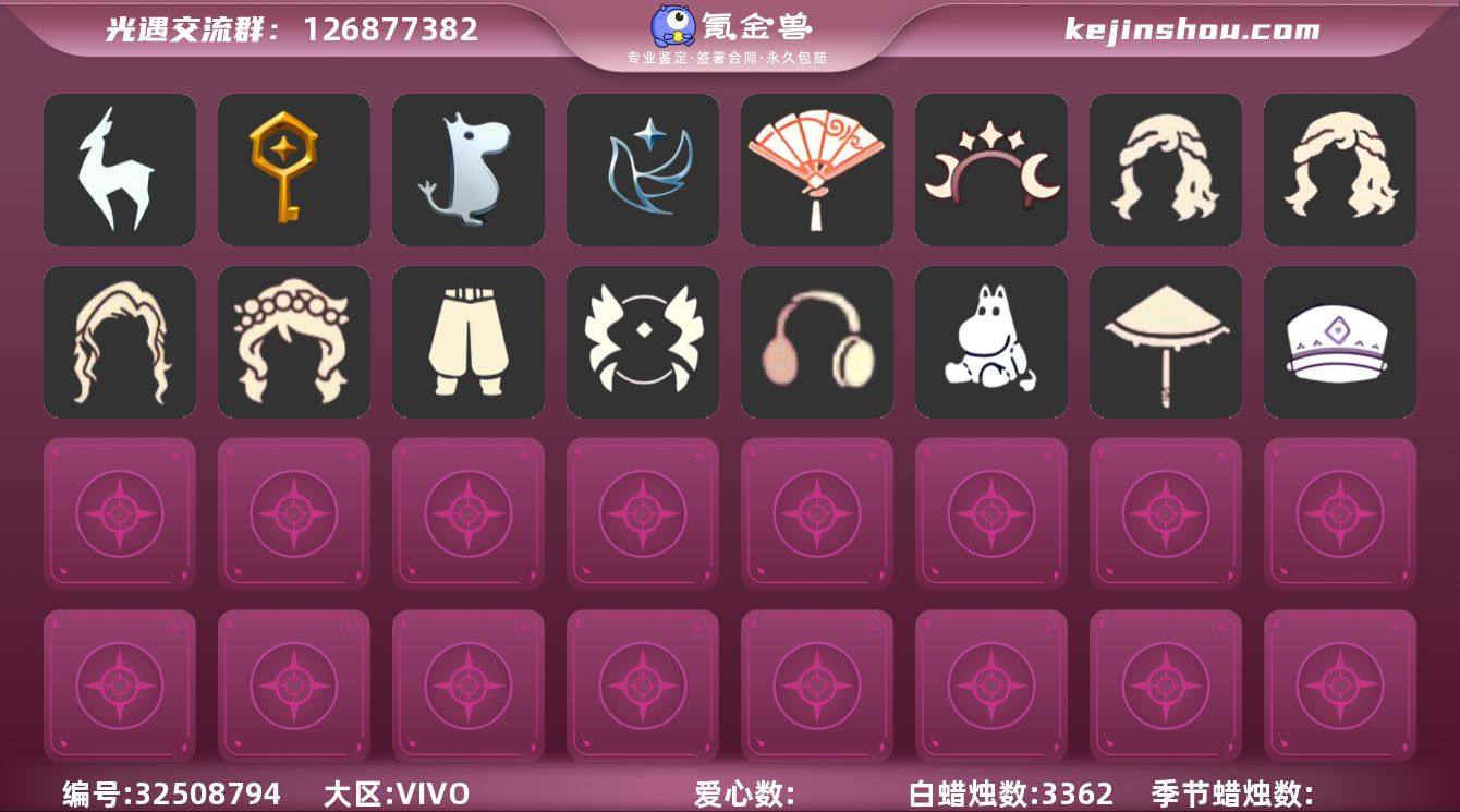 蜡烛数:3362/爱心数:14/九色鹿季/筑巢季/姆明季/青鸟季/九色鹿丸子头/九色鹿丝带裤/光之子试衣/设计师长袍/合奏挂画/蓝色燕尾服/姆明大伞/姆明抱枕/青鸟毕业面饰/青鸟斗篷/海蓝波浪发型/星月头饰/白雪斗篷/献瑞折扇礼包/武士裤/虚荣/花环/红耳机/平顶帽/白金斗篷/雨伞/星月头冠/猫猫头/花环长发/玉兔发饰/情人秋千