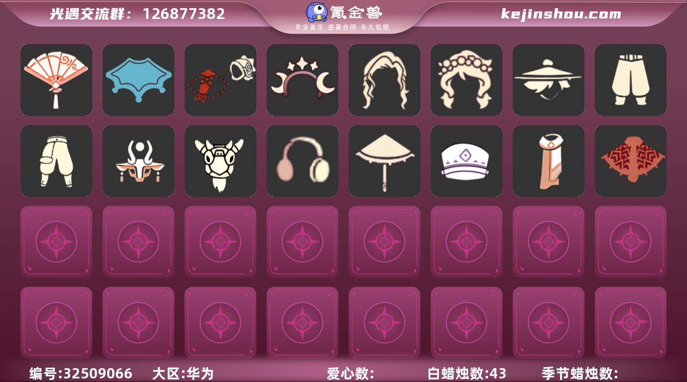 蜡烛数:43/爱心数:11/晨岛/雨林/霞谷/墓土/姆明大伞/辉光羚羊面具/彩染围巾斗篷/跃动跑鞋/鲤鱼套/星月头饰/圣诞鹿角/瑞雪/白雪斗篷/献瑞折扇礼包/武士裤/搓澡巾/虚荣/花环/红耳机/若笠/平顶帽/白金斗篷/黑金斗篷/雨伞/羊头面具/星月头冠/花环长发/雪花发夹/创始人斗篷/围巾斗篷/小王子围巾