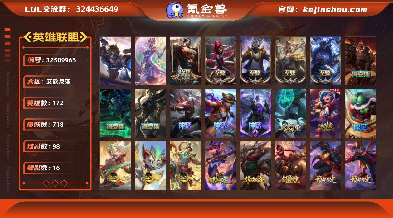 【LD5286】172英雄/718皮肤/2终极/15神话/116限定/16臻彩/98炫彩/61传说/137史诗/铂金/爱意绵绵/觅心之翼奎因/玉剑传说无影/10周年 安妮/源代码 乐芙兰/十五周年纪念 希维尔/殿堂传奇 薇恩/灰烬守护者 慎/至臻 魔女 乐芙兰/至臻 黑色玫瑰假面舞会 卡特琳娜/至臻 凯旋将军 德莱厄斯/至臻永恒星灵佐伊/至臻 真实伤害 亚索/至臻 灵魂莲华 劫/至臻 DRX 亚托克斯/摄魂 薇恩/海克斯 人马/恐惧新星 德莱厄斯/天龙之子 卡莎 飞龙乘云/墨之影武者 亚索 金墨耀影/冠军典狱长 锤石 凯旋圣装/偶像歌手 阿狸 极地雪莲/天煞 劫 恒星游历者/玉剑传说 无劫 胭脂/霸天异形 卡兹克 刹那银光/星之守护者 霞 烈羽/持七彩冰棍的雪人 易/灵魂莲华 亚索 霜见之时/幻灵战斗队长 厄运小姐 勇气赞歌/魔女 阿卡丽 虚荣/魔女 阿狸 饕餮/净雪之月 莫甘娜 冬虹/心之钢 伊泽瑞尔 天纵才华/龙年 孙悟空/玉净夜叉 凯特琳/司马懿 仲达/金猪烈焰 瑟庄妮/福牛守护者 厄斐琉斯/福牛守护者 德莱厄斯/天龙之子 李青/天龙之子 易/天龙之子 斯莫德/点心宝贝 阿木木/剪纸仙灵 烬/甜心宝贝 安妮/觅心游侠卢锡安/觅心女王 寒冰/幸福女神 乐芙兰/持胡萝卜的雪人 易/圣诞开心鬼 提莫/圣诞精灵 崔丝塔娜/圣诞狂欢 努努/狂心冰...