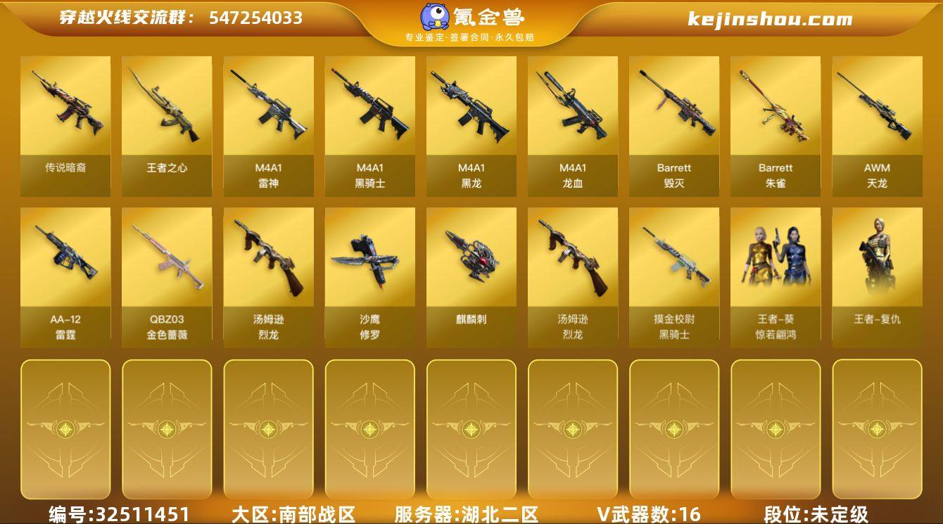 MCF770【16V 传说暗裔】【等级】102【区服】湖北二区【英雄角色】1【英雄武器】16 【传说级武器】传说暗裔【王者级武器】王者之势-觉醒版 王者之心【英雄级角色】葵【英雄级武器】Barrett-毁灭 AA-12-雷霆 汤姆逊-烈龙 M4A1-雷神 Barrett-朱雀 M4A1-雷神 QBZ03-金色蔷薇 加特林-炼狱 M4A1-黑骑士 Barrett-毁灭 M4A1-黑龙 M4A1-龙血 麒麟刺 沙鹰-修罗 AWM-天龙【挑战级武器】征服者-超越觉醒 [Lv 2] 封神放逐者III 迷你深渊冰龙 神圣爆裂者-末日III 迷你白狐【通用级角色】铁骑荣耀 妲己 娟娟 紫霞 邱刚敖 【强化级角色】黎明玫瑰 堕天使 西部牛仔-网吧专属 铁扇公主