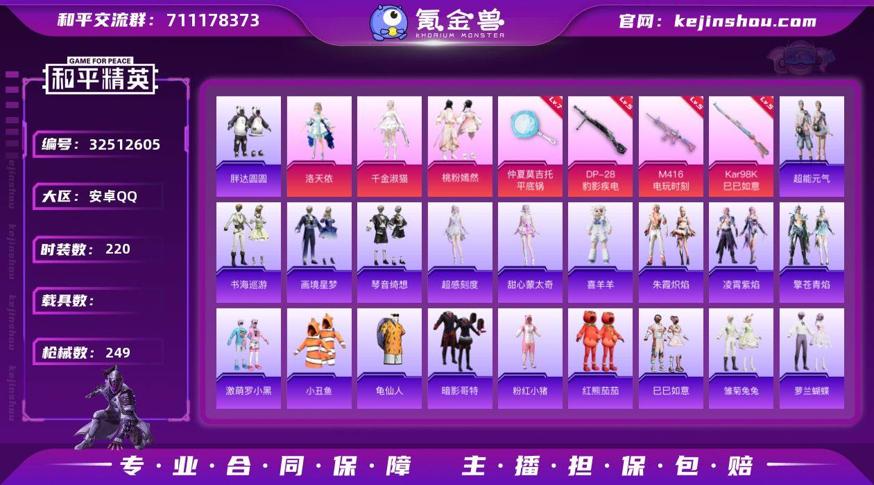 安卓【公主号 绝对防御上衣,套装-胖达圆圆,套装-暗影哥特,套装-红熊茄茄,角色-洛天依,角色-千金淑猫,M416-电玩时刻(五级),Kar98K-巳巳如意(五级)】 手Q-3粉装-5特效枪-0载具-1粉色飞行器-77123热力值-17王牌印记-220套装-249枪皮 【热门品类】:绝对防御上衣,套装-小丑鱼,套装-胖达圆圆,套装-龟仙人,套装-暗影哥特,套装-粉红小猪,套装-红熊茄茄 【粉色套装】:角色-洛天依,角色-千金淑猫,粉装-桃粉嫣然 【粉色枪皮等级】:M416-电玩时刻(五级),Kar98K-巳巳如意(五级),Mk14-福马献瑞(五级),DP-28-豹影疾电(五级),平底锅-仲夏莫吉托(七级) 【粉色枪皮】:M416-电玩时刻,Kar98K-巳巳如意,Mk14-福马献瑞,DP-28-豹影疾电,平底锅-仲夏莫吉托 【粉色飞行器】:炫彩糖果飞行器 【粉色降落伞】:绝对恒星降落伞,洛神天依降落伞,旋转彩虹降落伞,海螺星光降落伞,未来歌姬降落伞,圣堂之誓降落伞,金丰海韵降落伞,千金淑猫降落伞,彩虹独角兽降落伞,樱桃泡泡降落伞,幻彩电音降落伞,荧海星豚降落伞,喜羊羊与灰太狼降落伞,炫彩糖果降落伞 【稀有套装】:套装-龟仙人,套装-巳巳如意,套装-超能元气,角色-超感刻度,角色-甜心蒙太奇,套装-雪国风尚,套装-...