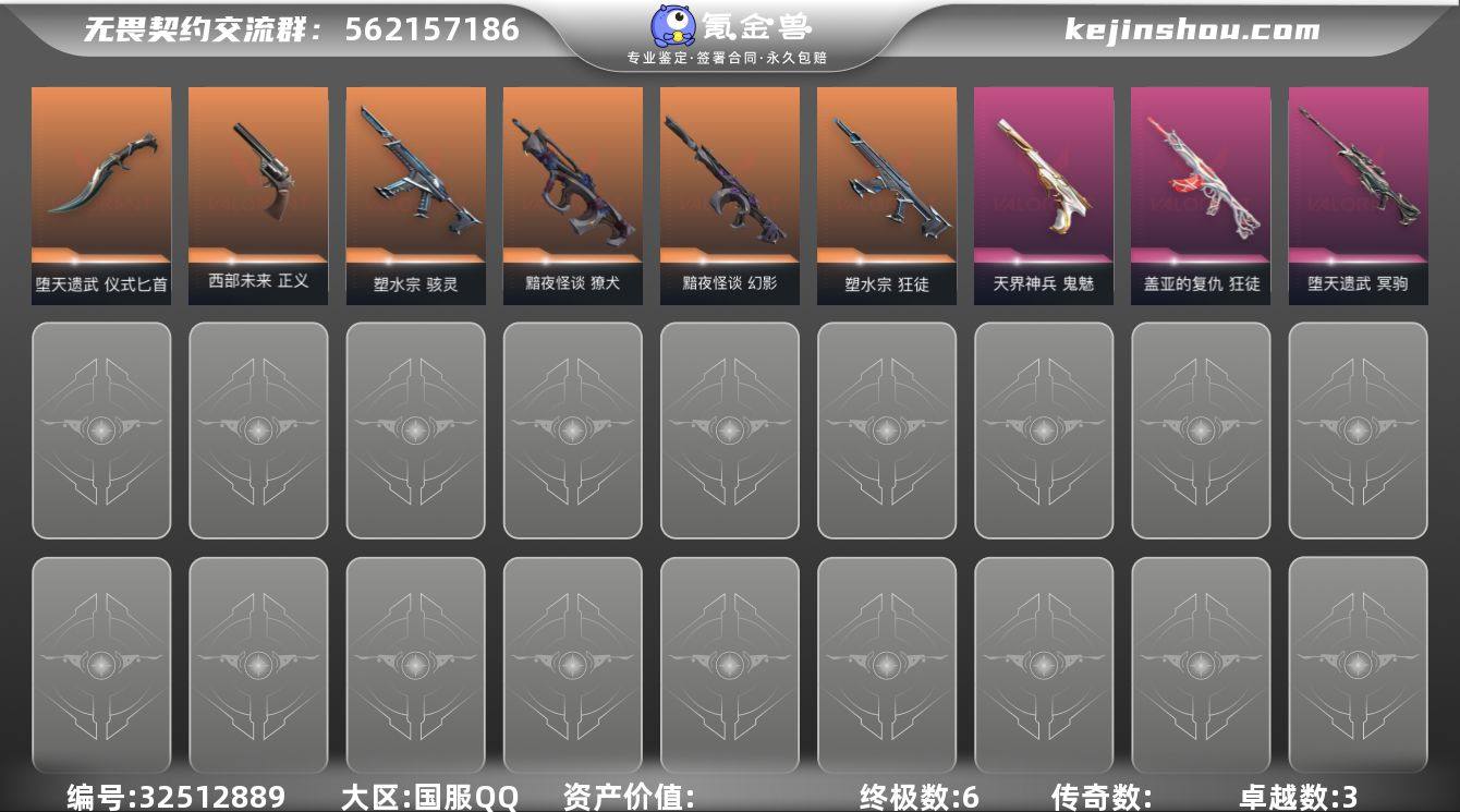 【WWZG393】终极*6/卓越*3/皮肤*17/等级*171/段位:未定级/幻棱/炼狱/维斯/暮蝶/钛狐/壹决/铁臂/捷风/雷兹/幽影/不死鸟/贤者/猎枭/蝰蛇/零/芮娜/奇乐/尚勃勒/霓虹/斯凯/夜露/星礈/K/O/海神/盖可/黑梦/钢锁/堕天遗武 仪式匕首/狂徒-塑水宗/狂徒-盖亚的复仇/幻影-黯夜怪谈/獠犬-黯夜怪谈/冥驹-堕天遗武/骇灵-塑水宗/标配-超能偶像/正义-西部未来/正义-超限闪存/正义-复古浪潮/正义-纳米打击/鬼魅-天界神兵/鬼魅-流星兵团/鬼魅-诡秘蛇影/鬼魅-星云暗涌/终章:激斗汉堡 卡面/进入射程 卡面/《双城之战》拥抱 卡面/精灵大战 卡面/欢迎来到底城 卡面/南瓜盛典 卡面/VCT CN首冠 卡面/修车达人 卡面/正义的化身 卡面/终章:生意人麦宝 卡面/铁之华 卡面/时间到 卡面/最高舞台 卡面/音熊登场 卡面/树懒大作战 卡面/声感陷阱设计图 卡面/Clutch 卡面/霓帧牛蛙 卡面/梦幻奶茶 卡面/终章:打造专属狂徒 卡面/趁热吃 卡面/源能反应 卡面/零点嗅探设计图 卡面/终章:瓦娃脸雪糕 卡面/表象之下 卡面/沙雕爆能器 卡面/无畏契约GO!第一卷:芮娜 卡面/清除名单 卡面/无畏契约GO!第一卷:零 卡面/龍记 卡面/无垠星环 卡面/《双城之战》金克丝 卡面/完美调谐 卡面 /暗枪 卡面/铁臂设计图 卡面/代...