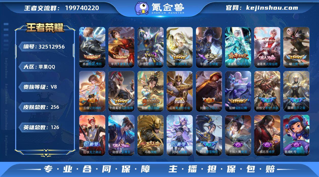 【捡漏号·大秦宣太后·鸣剑曳影·启示之音·时雨天司·一念神魔·至尊宝·共赏芳华天幕·可二次】w20091-苹果Q-126英雄-256皮肤-13王者印记-300铭文-贵族积分6w【贵族8】【2典藏·1星传说·17传说·1天幕·6按键】【因赛季更新游戏段付以上号为准!】 【荣耀典藏】:芈月大秦宣太后,李白鸣剑曳影 【星元皮肤】:孙悟空零号雷霆 【天幕】:共赏芳华天幕 【传说皮肤】:云缨幻光神枪,桑启鸣野蒿,孙悟空齐天大圣,吕布怒海麟威,露娜启示之音,貂蝉遇见胡旋,诸葛亮时雨天司,镜炽阳神光,虞姬启明星使,孙悟空零号赤焰,曜云鹰飞将,李信一念神魔,刘备时之恋人,貂蝉猫影幻舞,干将莫邪久胜战神,后羿黄金射手座,诸葛亮武陵仙君 【限定皮肤】:姜子牙天穹之誓,杨戬破阵退雄兵,狄仁杰阴阳师,赵云皇家上将,墨子神迹守卫,孙尚香蔷薇恋人,鲁班七号狮舞东方,庄周高山流水,高渐离玩趣恶龙,阿轲迷踪丽影,扁鹊奇幻香踪,白起夜都怪侠,元歌云间偶戏,马可波罗暗影游猎,狄仁杰魔术师,狄仁杰万华元夜,达摩星际陆战队,达摩沙漠行僧,项羽海滩派对,老夫子醍醐杖,老夫子航海奇遇记,貂蝉遇见胡旋,程咬金演武夺筹,露娜启示之音,刘邦夺宝奇兵,韩信逐梦之影,韩信傲雪梅枪,兰陵王...